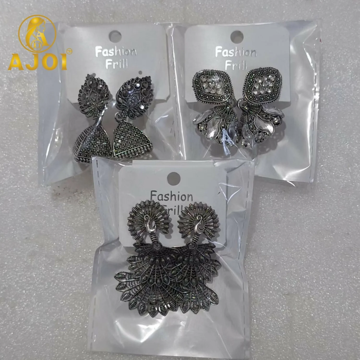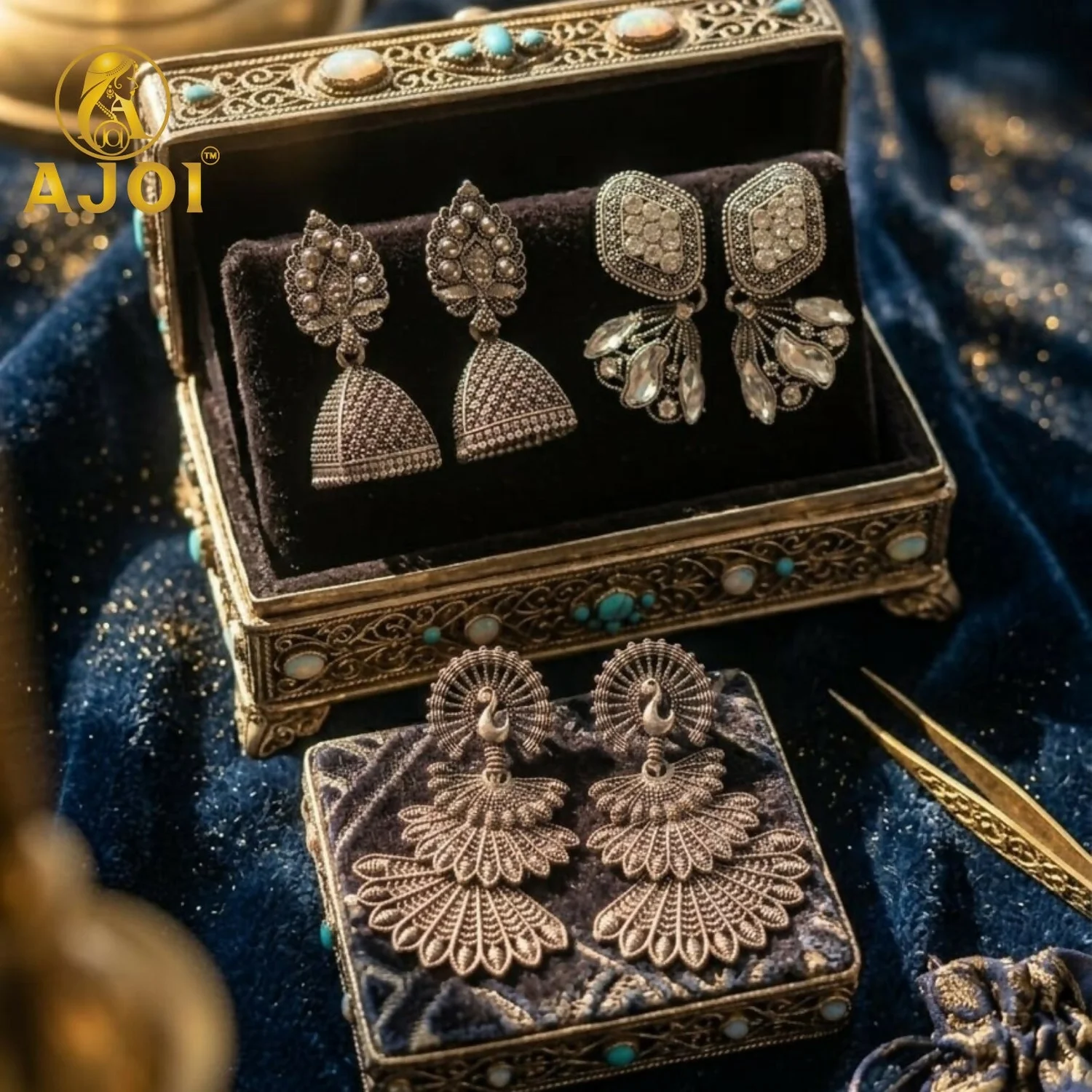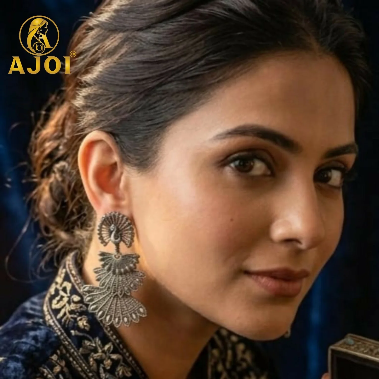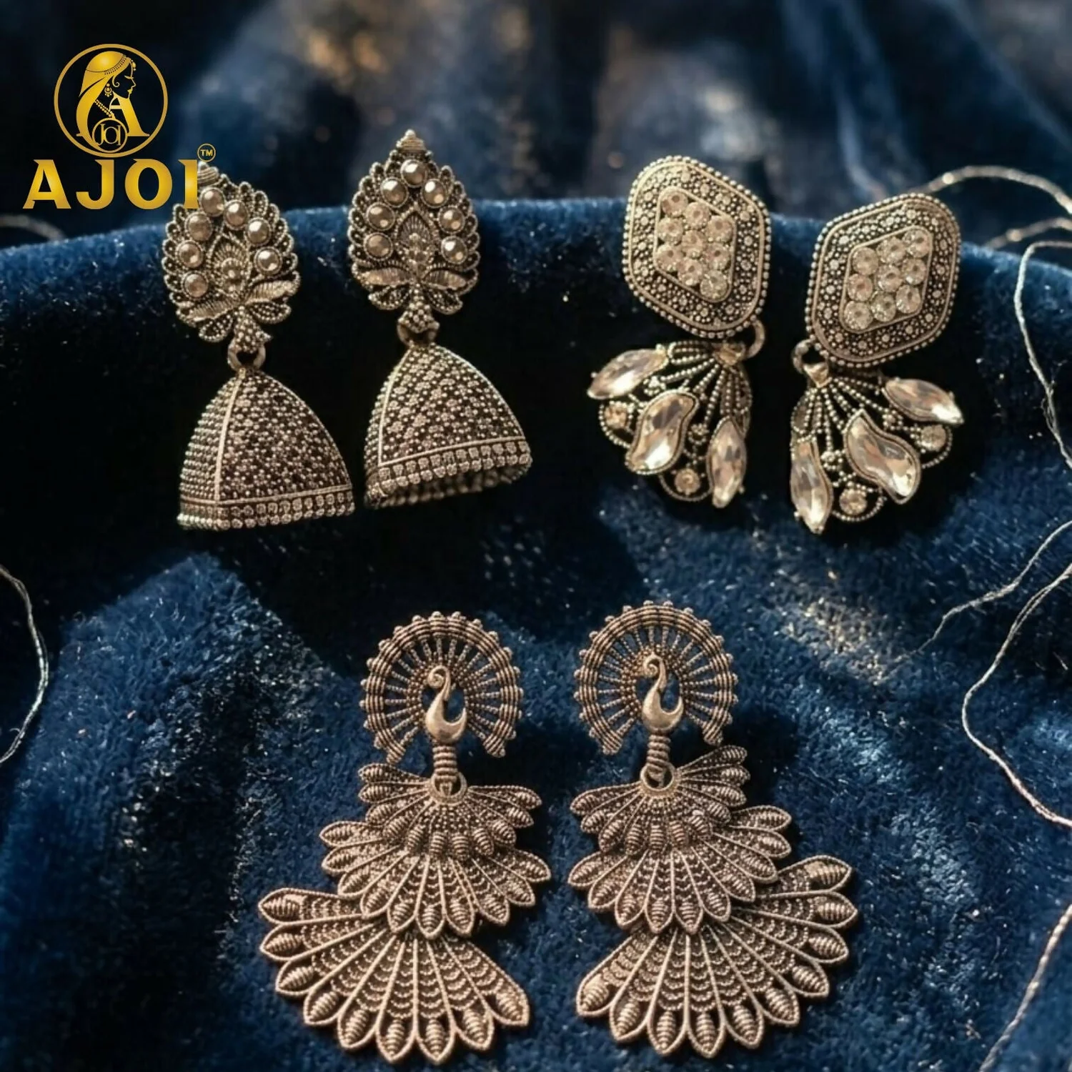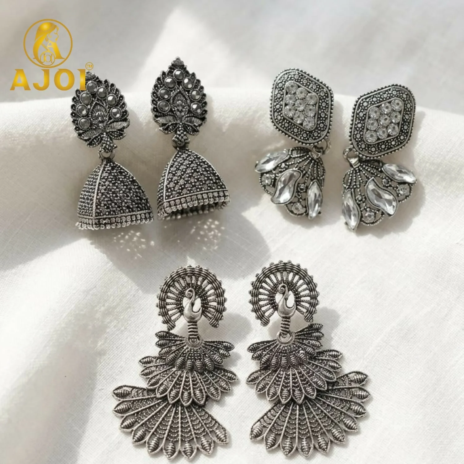 Be the first to review Oxidized Silver Earrings with Jhumka and Peacock Set of 3!