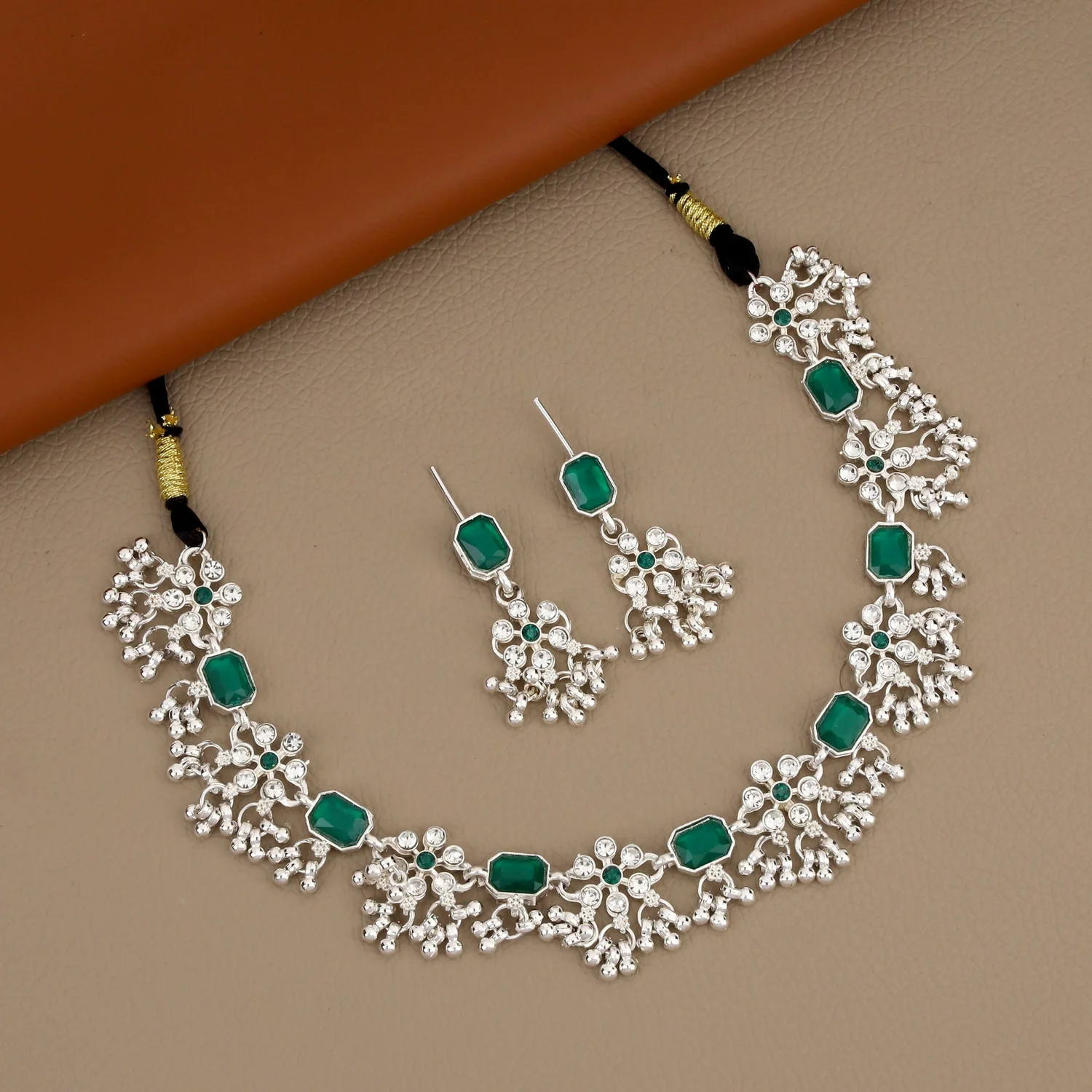 Be the first to review Oxidized Silver Green Teardrop Scallop Choker Set!