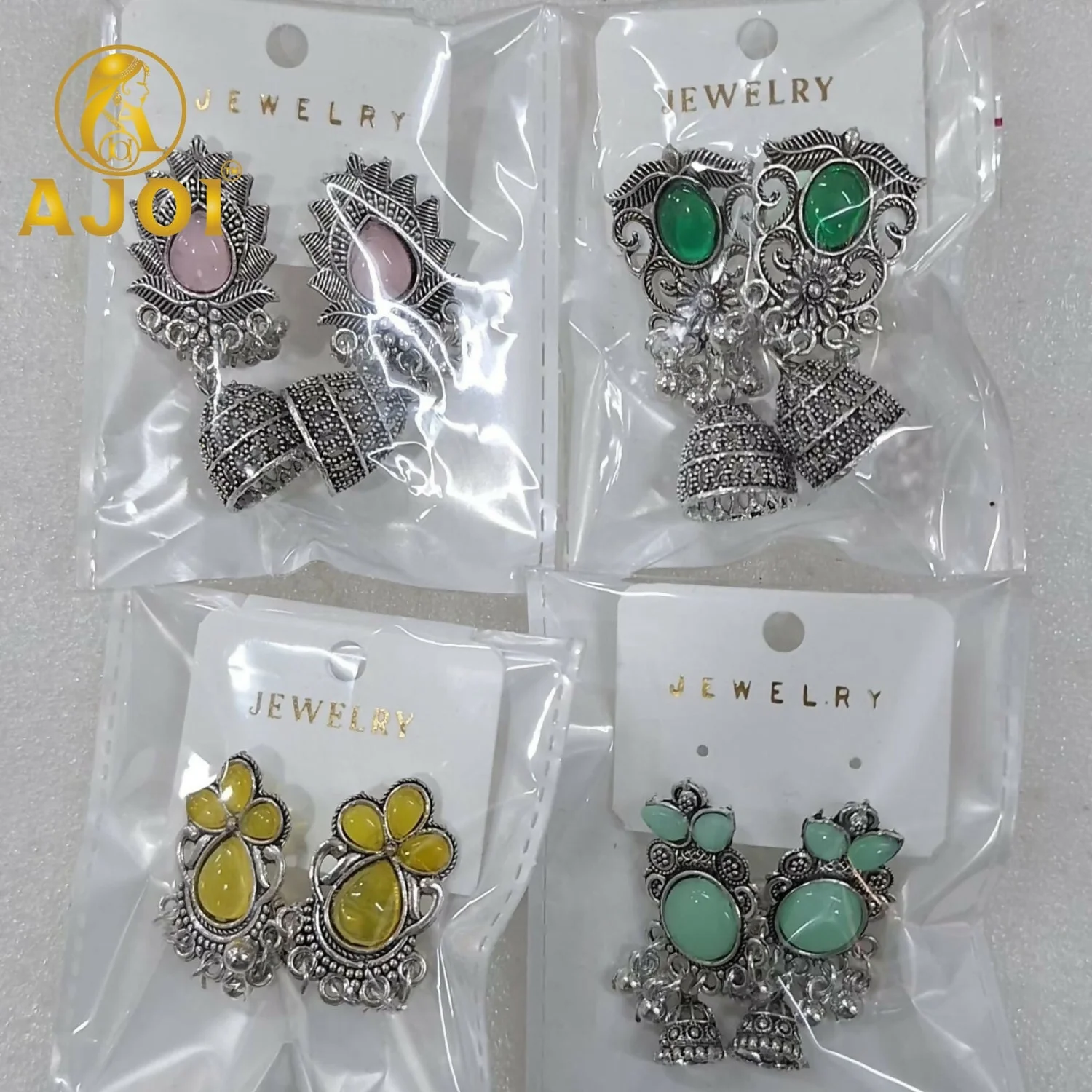 Be the first to review Oxidized Silver Jhumka Earrings Combo with Color Set of 4!