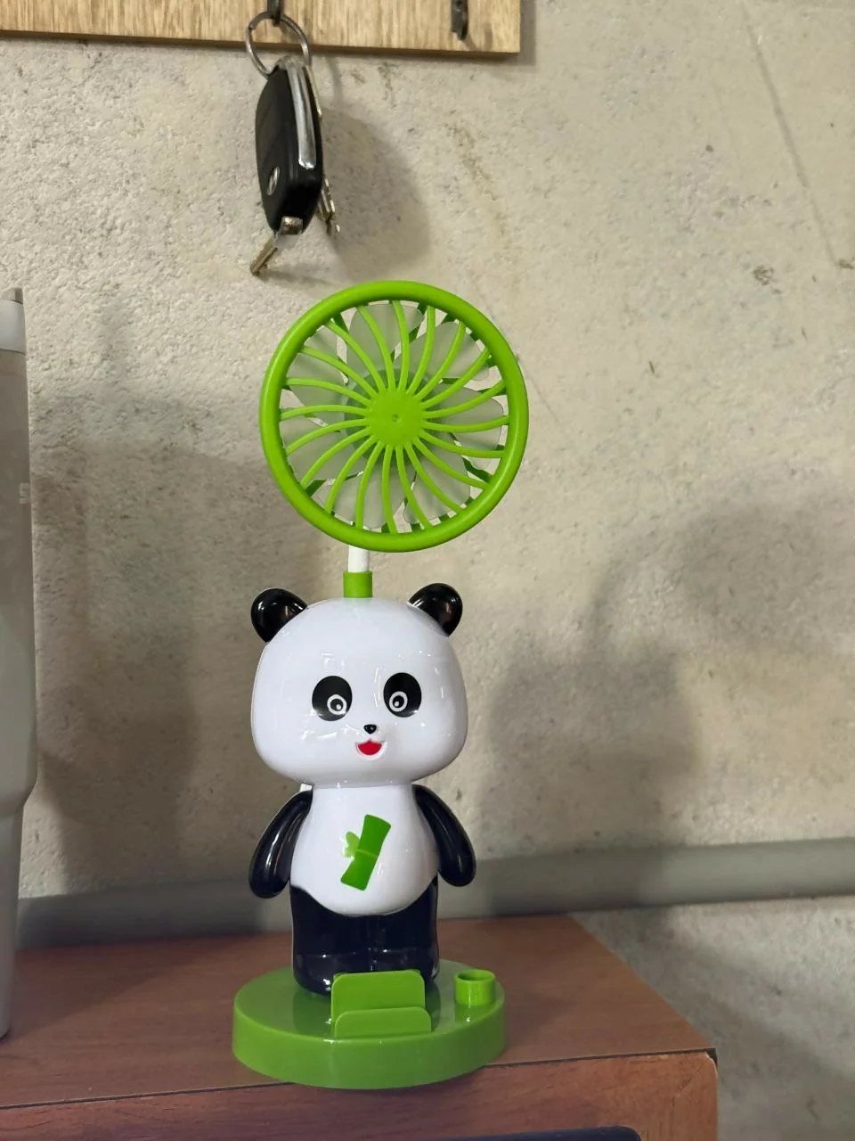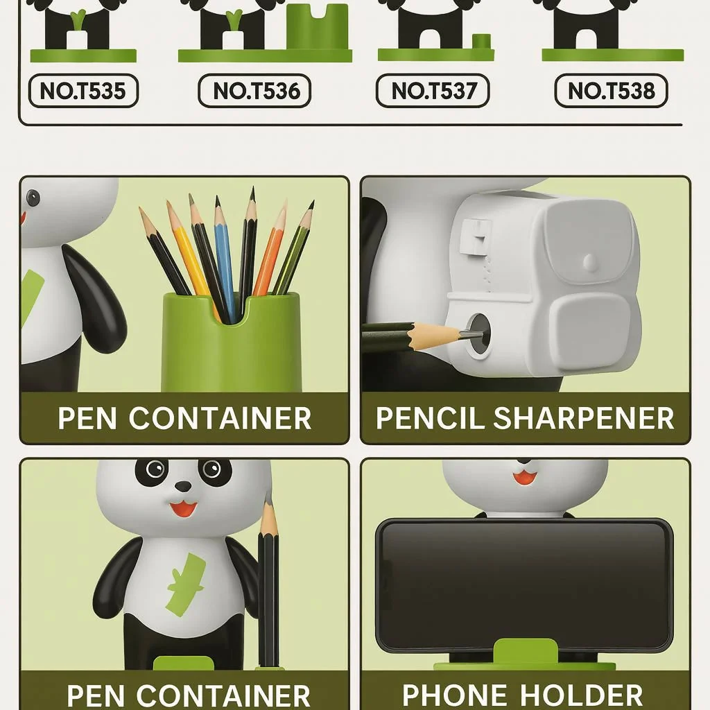 panda desk fan, mini table fan, desk organizer with fan, pen holder stand, pencil sharpener desk, mobile stand holder, kids desk accessory, study table fan, cute desk decor, portable mini fan