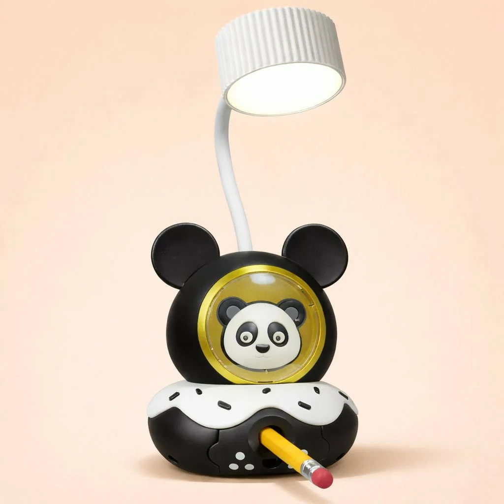 panda desk lamp, kids desk lamp, pencil sharpener lamp, kids study lamp, cartoon desk lamp for kids, LED study lamp, panda table lamp, kids study table light, panda night lamp, children reading lamp, kids desk accessories, cartoon table lamp, panda lamp for kids room, study lamp for children, cute desk lamp