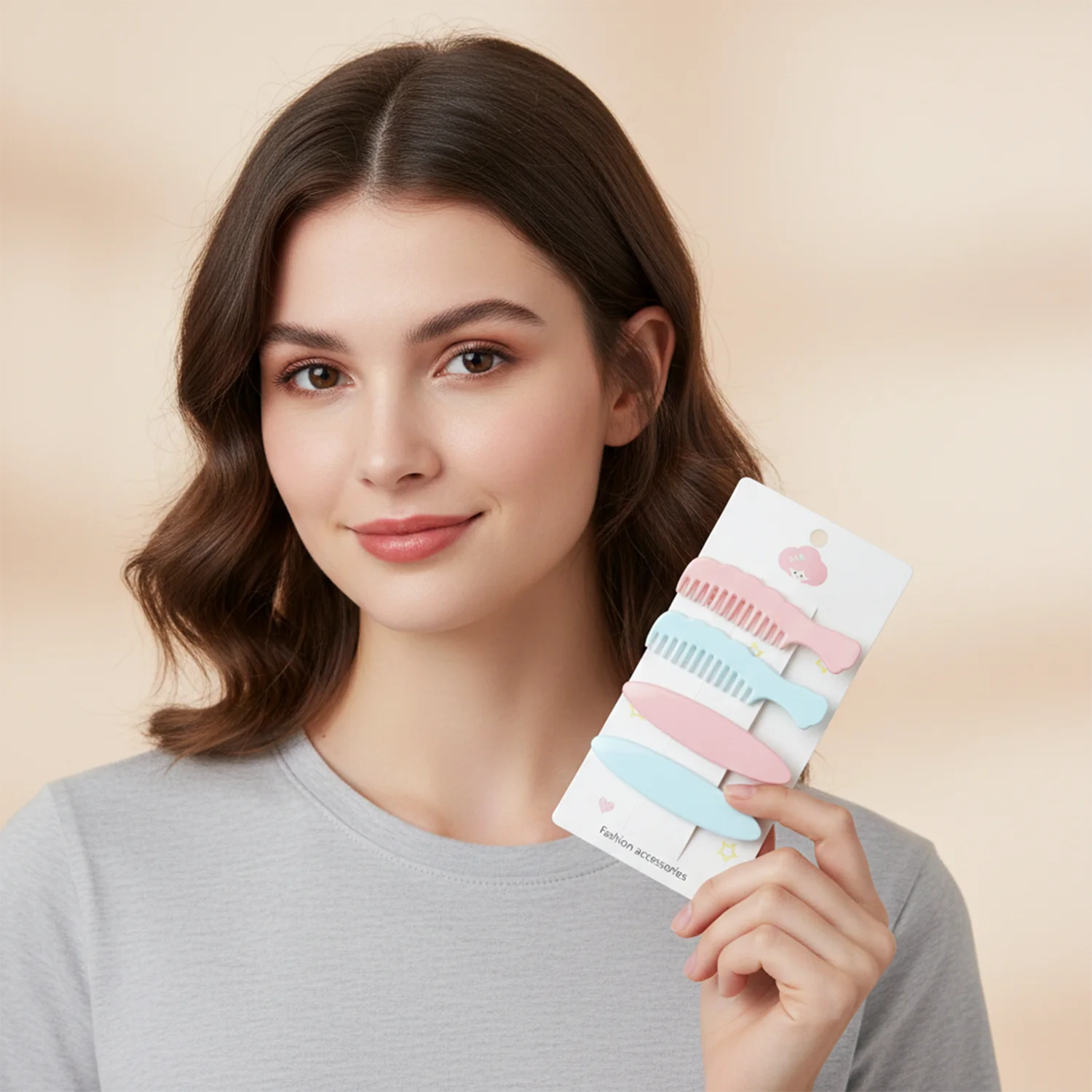 Pastel Comb-Style Hair Clip Set for Girls & Women – Elegant Daily Wear Hair Styling Accessories (Pack of 4 Pieces)