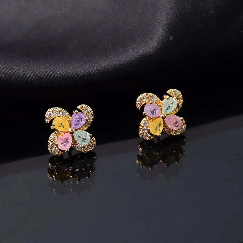 Be the first to review Pastel Crystal Flower Stud Earrings with Gold Finish for Women!