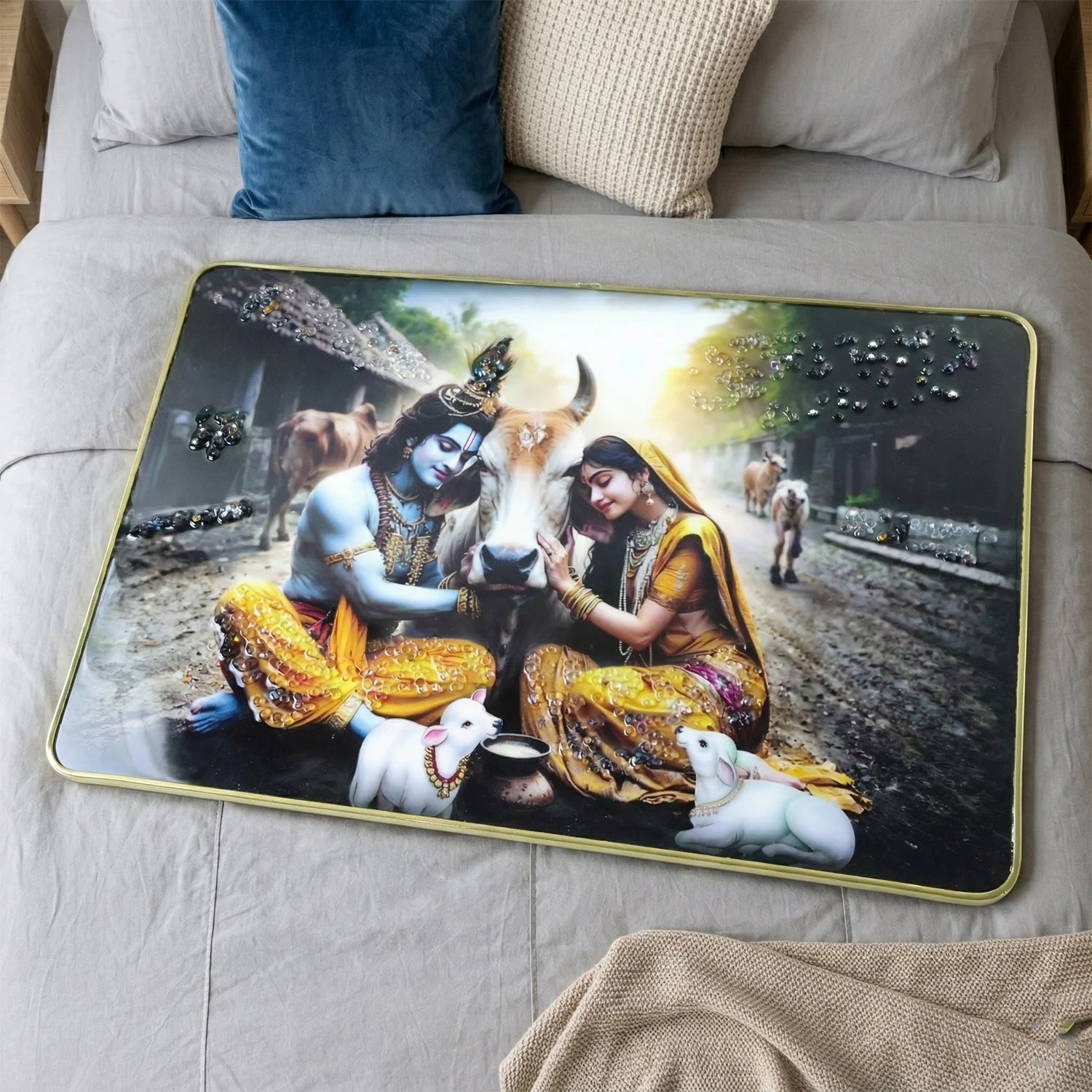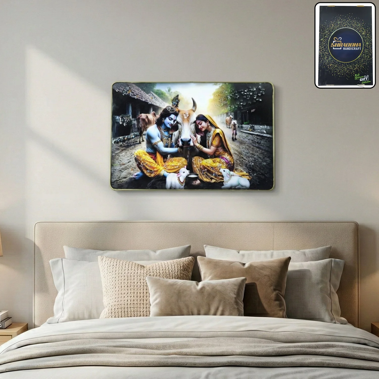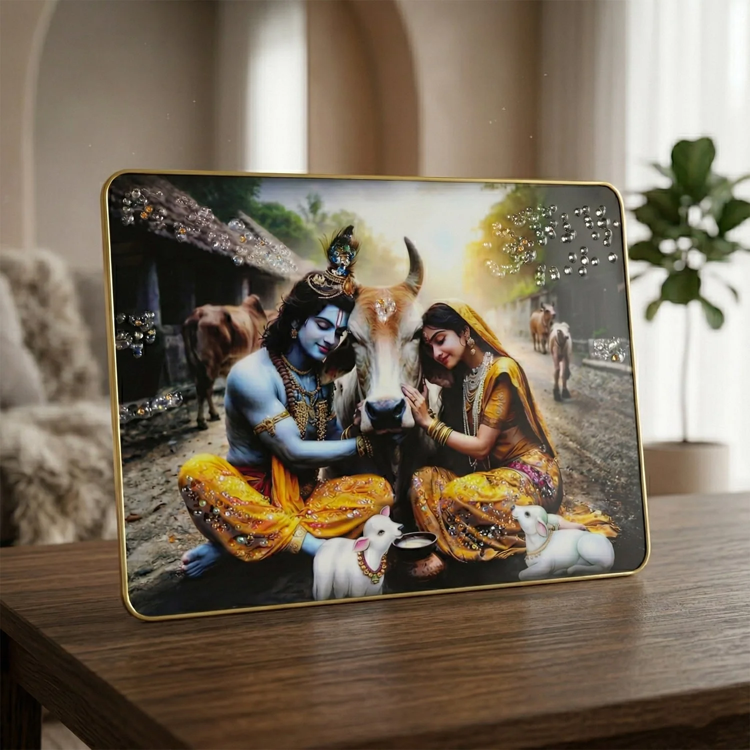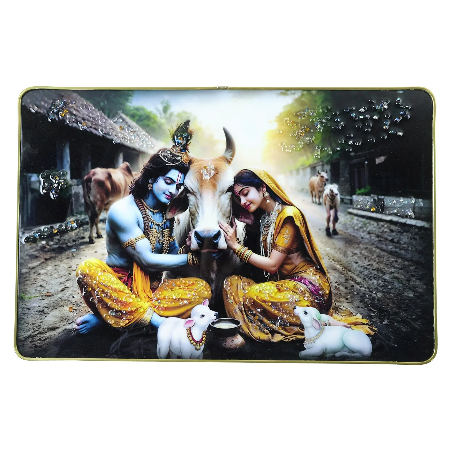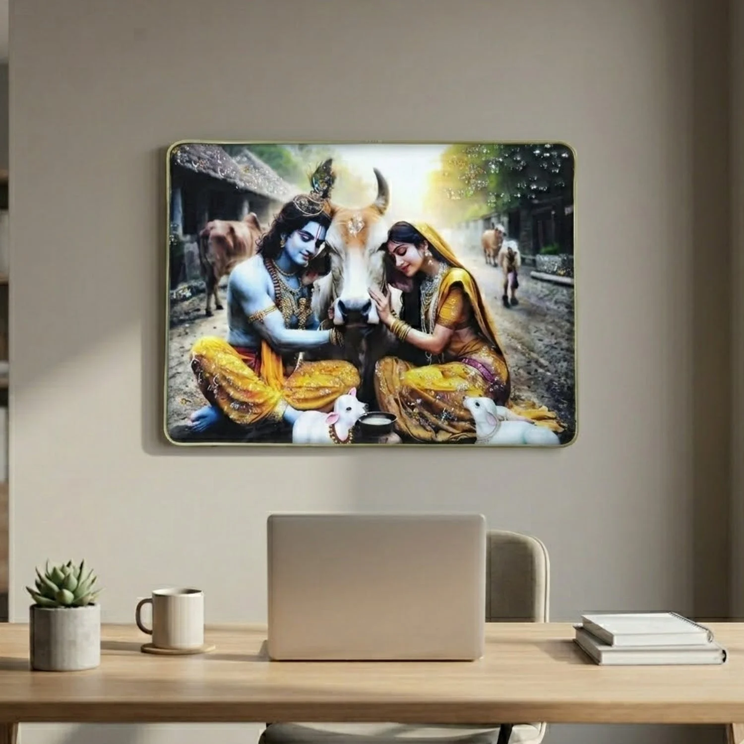 radha krishna village scene wall frame, radha krishna cow theme painting, krishna with cow wall art, peaceful radha krishna wall decor, spiritual village scene wall frame, hindu god wall painting, radha krishna photo frame, religious wall art frame, krishna radha pastoral artwork, decorative wall panel for home, temple wall decor painting, living room spiritual wall art, bedroom religious wall decor, office hindu wall art, devotional wall frame, indian mythology wall decor, radha krishna gift item, puja room wall painting, premium decorative wall frame, rustic spiritual home decor