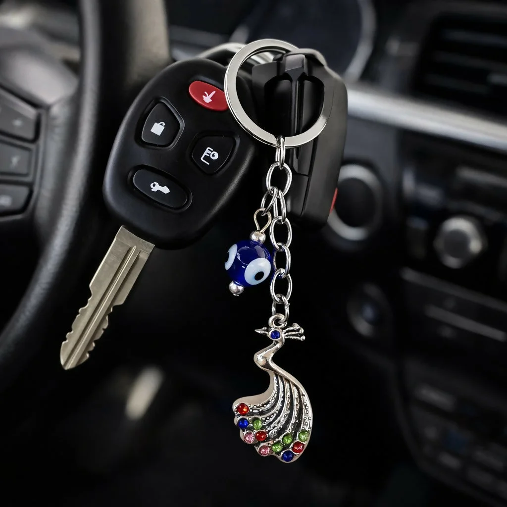 Be the first to review Peacock Evil Eye Keychain with Multicolour Stones for Car Keys & Bags!