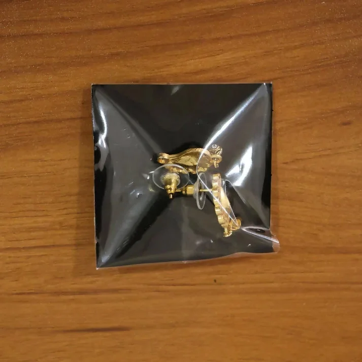 Be the first to review Peacock Inspired Gold Finish Earrings With Textured Motif And Stone Drop Accent!