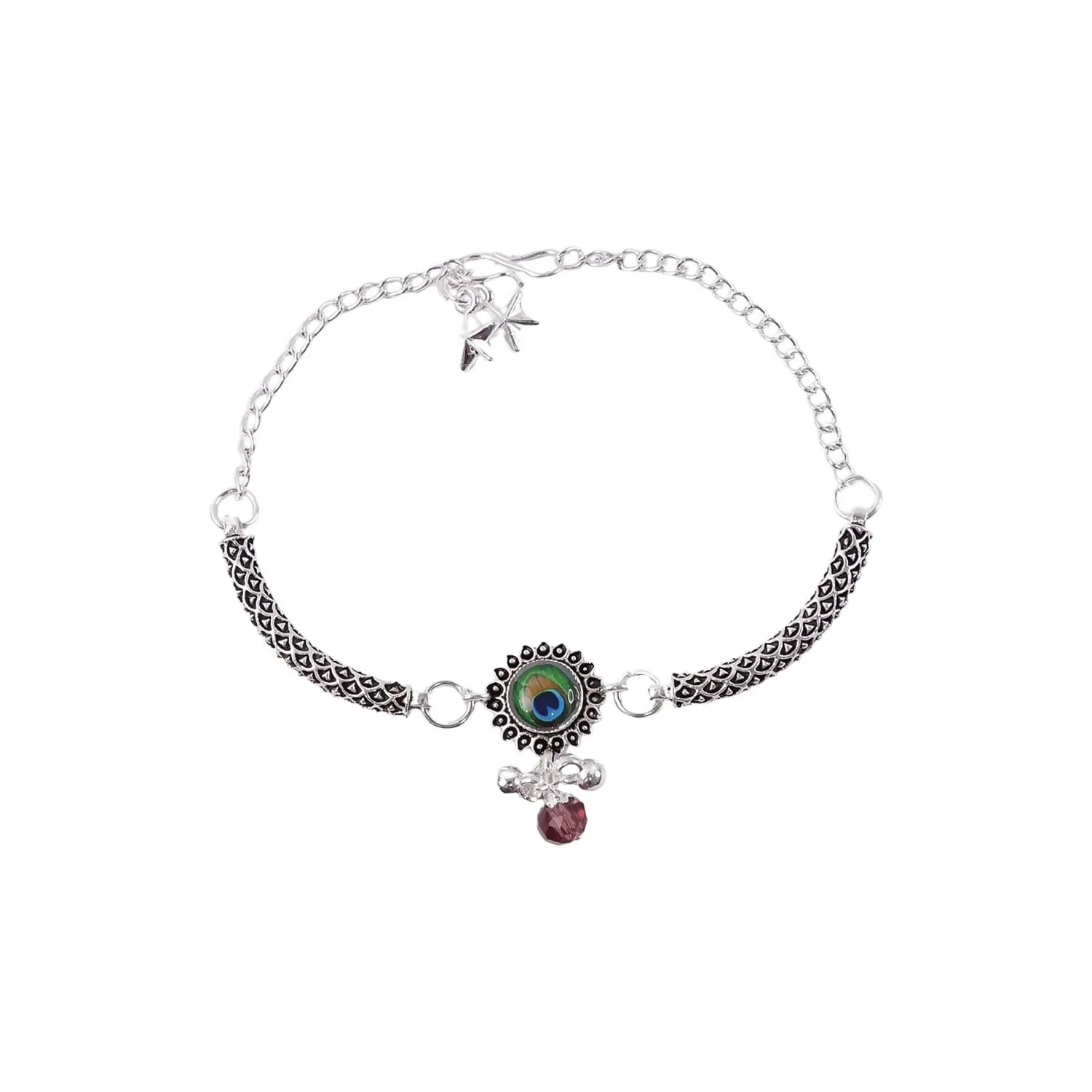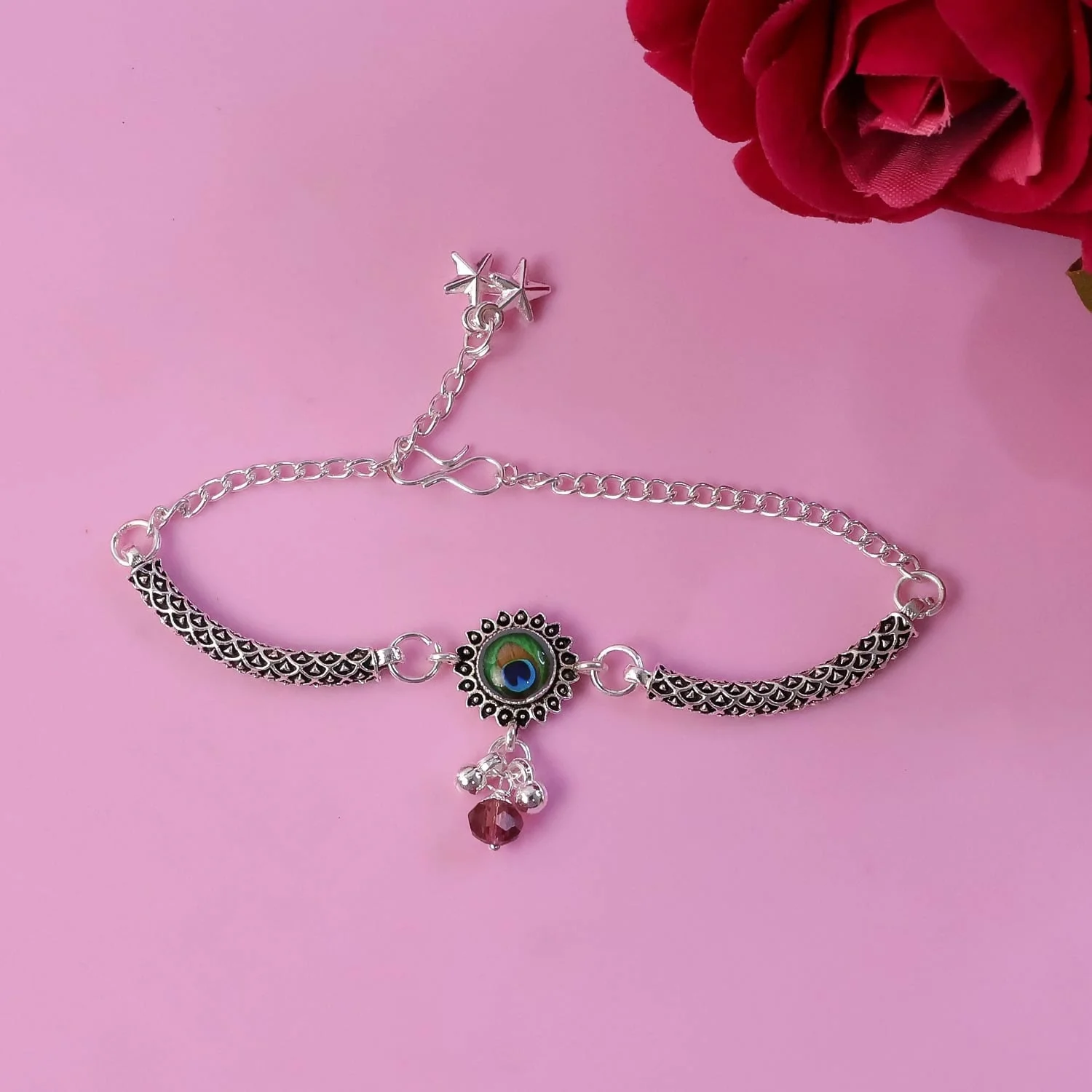 The delicate dangling crystal beads enhance its charm, while the adjustable chain ensures a comfortable and secure fit for all wrist sizes. Made with a premium silver-tone finish, this bracelet is lightweight, durable, and perfect for daily wear, festive occasions, or gifting.