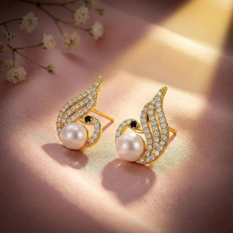 Be the first to review Pearl Swan Stud Earrings with Crystal Wings and Gold Finish for Women!