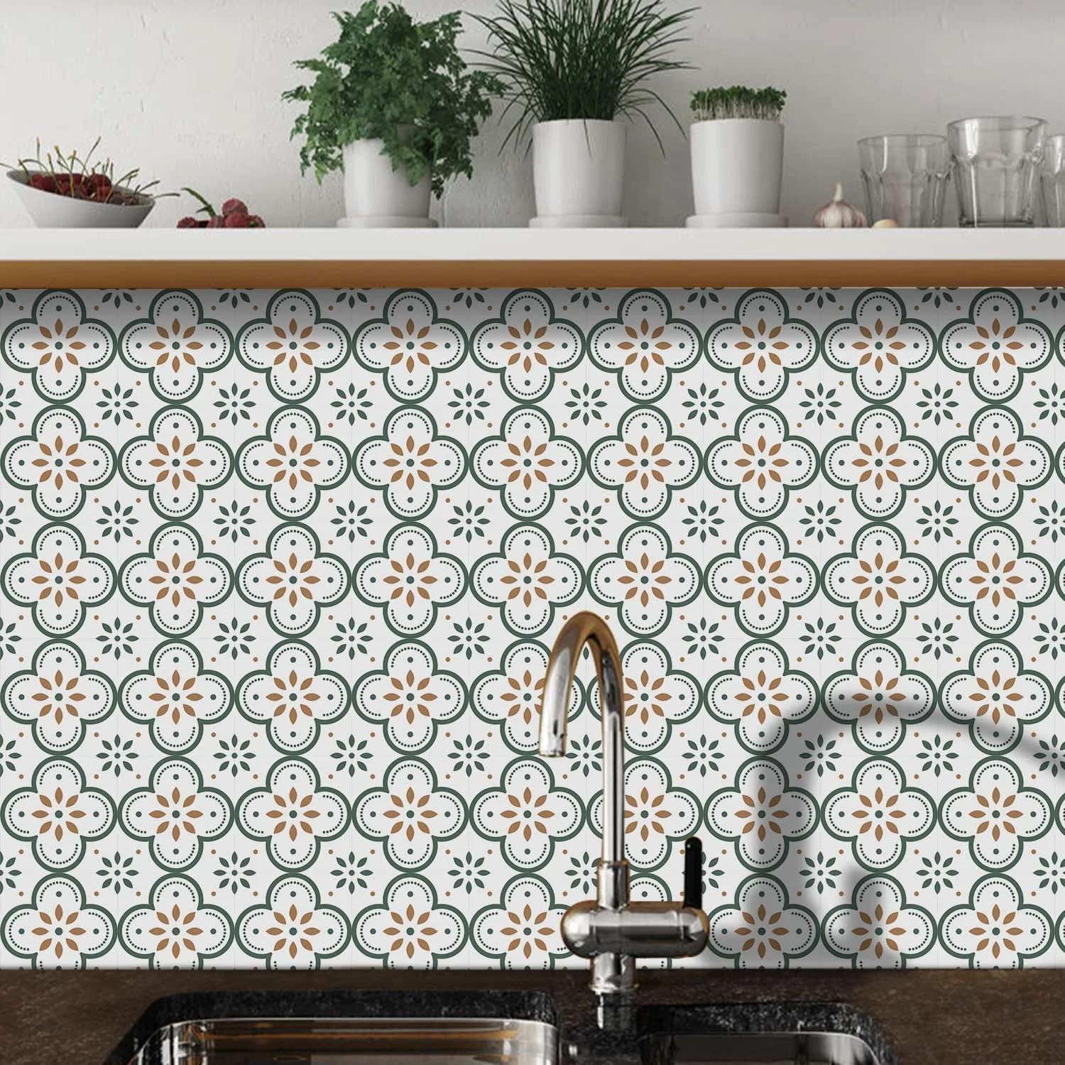 - The kitchen backsplash can be applied to a bathroom wall, kitchen wall, doors, furniture, walls, stairs, or any other smooth surface. Backsplash stickers are available in a variety of beautiful patterns, you can decorate your home with different patterns according to your preference.