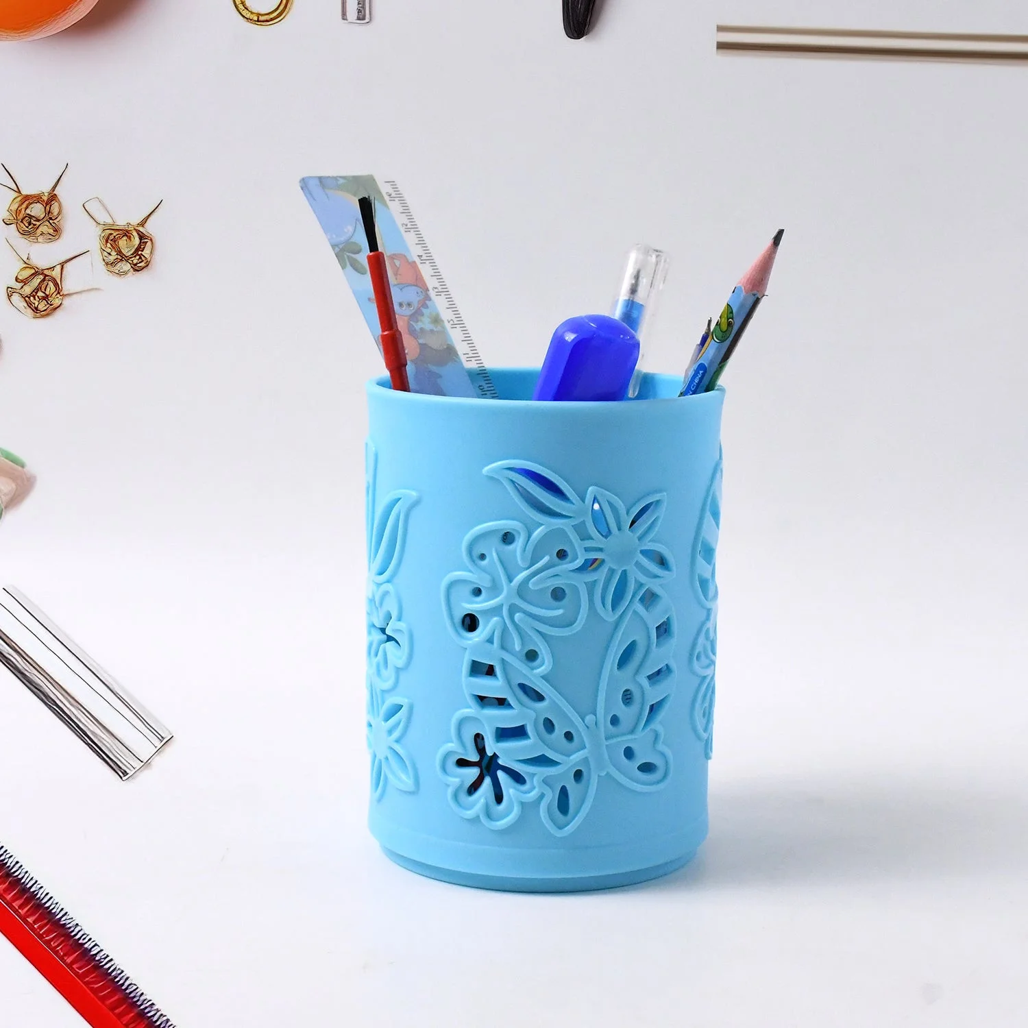 Pen holder Office Desk Plastic Mesh Pen Stand Pencil Stationery Holder Desk Organizer Stand Storage Pencil Case (1 Pc)