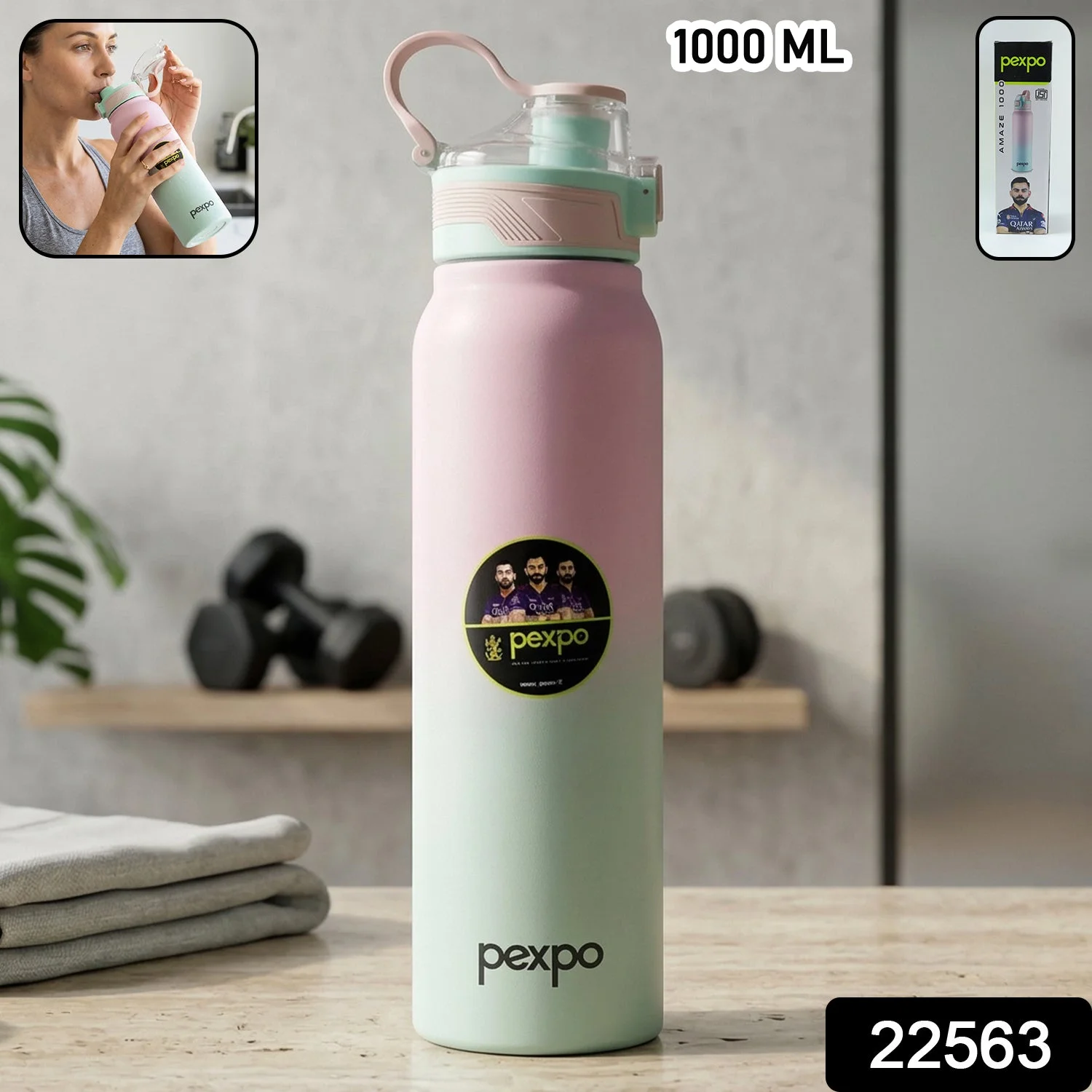 Pexpo Amaze Hot & Cold Insulated Stainless Steel Water Bottle with Flip Top Lid and Carry Handle for Gym Workout Office Travel Outdoor Hydration – 1000 ML