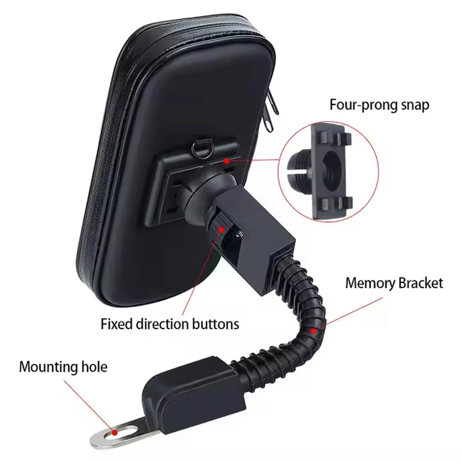 Phone Holder Case Weather Resistant Bike Mount, Transparent Touch Screen Panel 360 Degrees Adjustable Case Waterproof Phone Holder with Zipper for Motorcycle for Outdoor (1 Pc)