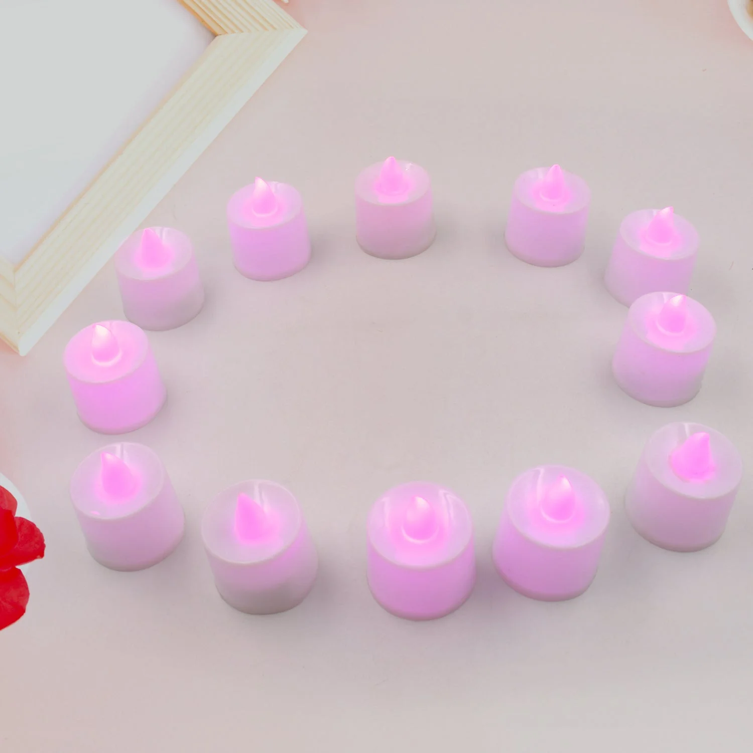 6632A Pink Flameless LED Tealights, Smokeless Plastic Decorative Candles - LED Tea Light Candle For Home Decoration, Diwali Item (Pack Of 12pc) (Diya, Divo, Diva, Deepak, Jyoti)