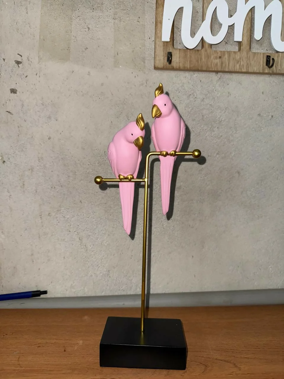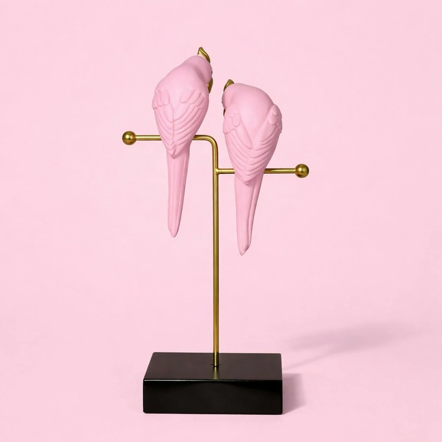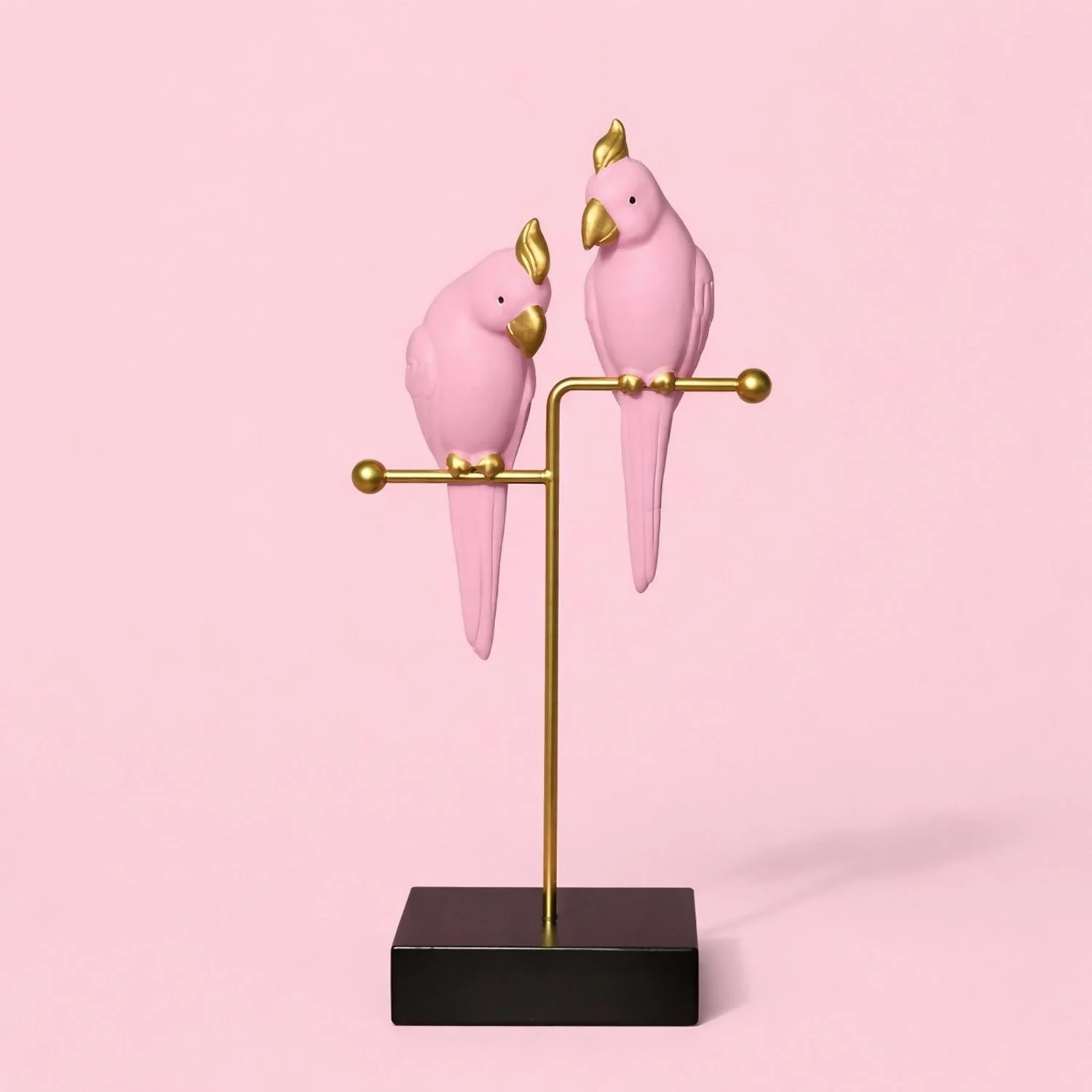 Add a soft, elegant charm to your space with this premium pink love birds decorative showpiece. Crafted with delicate pastel pink birds perched on a sturdy gold-finish metal stand and a solid black base, this décor piece symbolizes love, warmth, and togetherness. Its modern yet artistic design makes it a perfect accent for living rooms, bedrooms, office desks, shelves, and side tables. An ideal gifting option for special occasions and décor lovers.