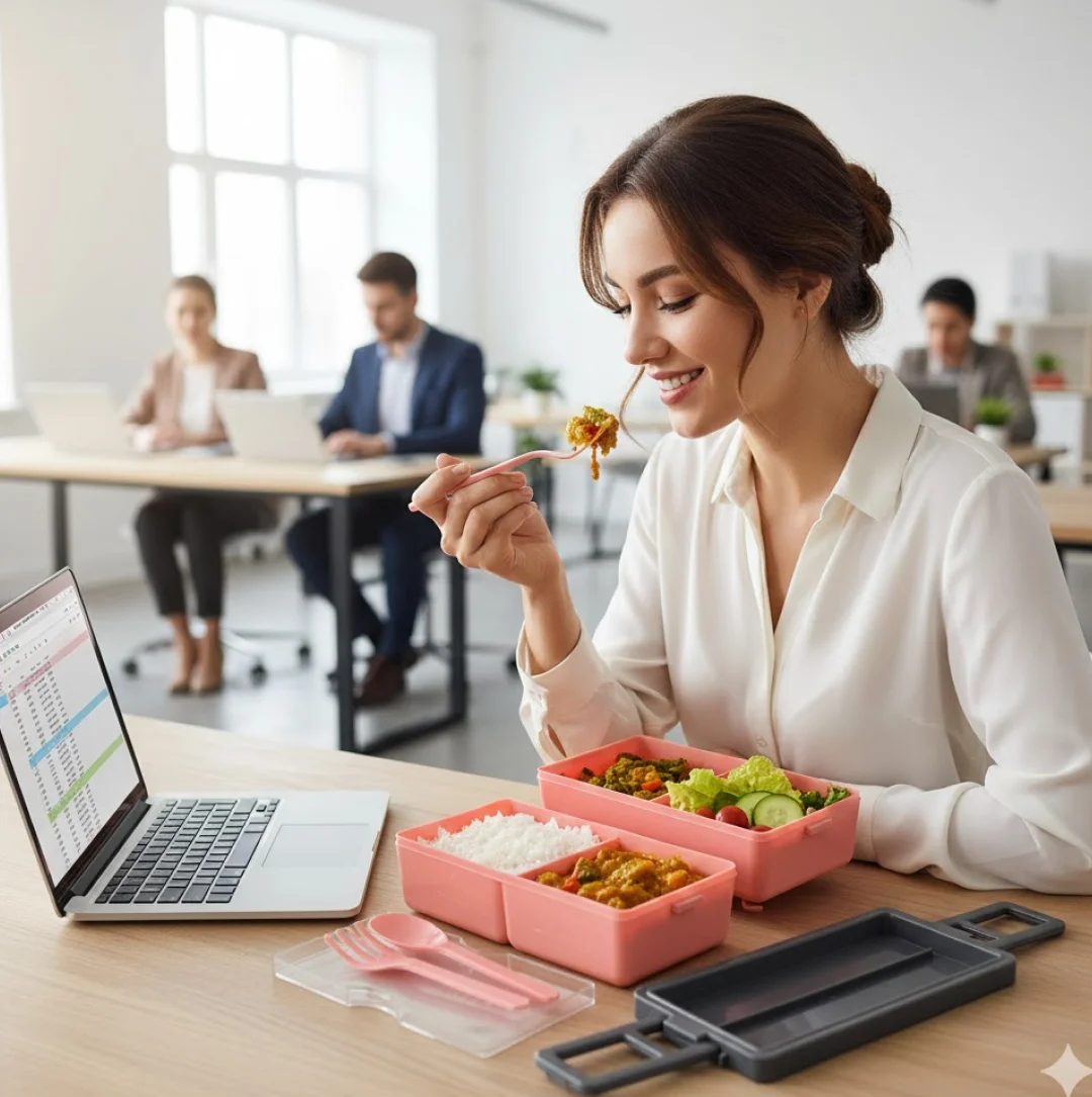 Leak Proof 3 Compartment Lunch Box for Office Men and Lunch Box for Kids, Microwave Safe Lunch Boxes, Reusable, Freezer Safe Food Containers with Spoon & Fork for Adults and Kids PP Food Grade Plastic Leak Proof 2 Layer Boxes, for Adults Kids Office Microwave Dishwasher Safe Available (1 Pc)