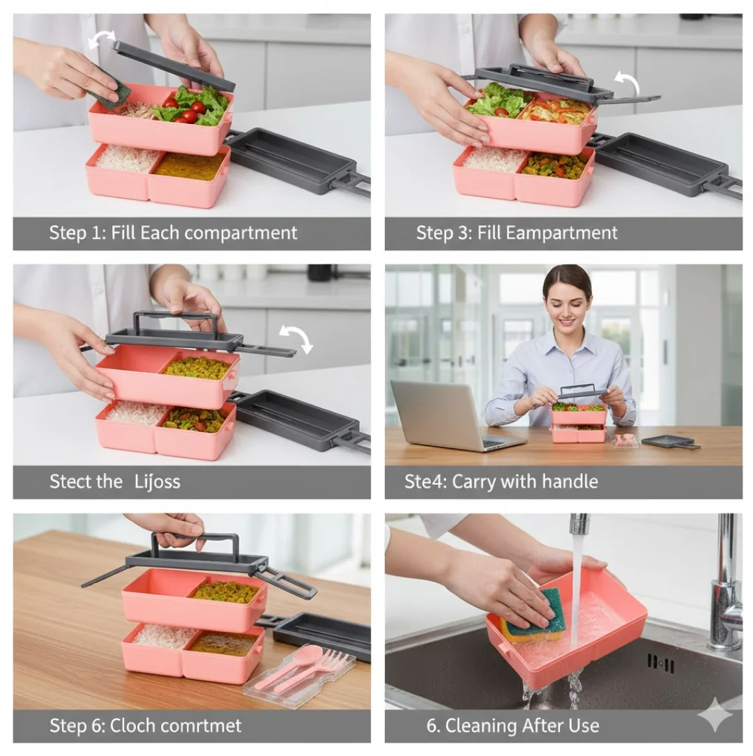 - 【Leakproof Design】Each container of this bento lunch box has a divider for good airtightness. It is recommended to open the ventilation valve before removing the divider to reduce the air pressure difference between the inside and outside of the container, making it easier to open! (Tip: bento boxes are better for storing dry and slightly soupy foods).