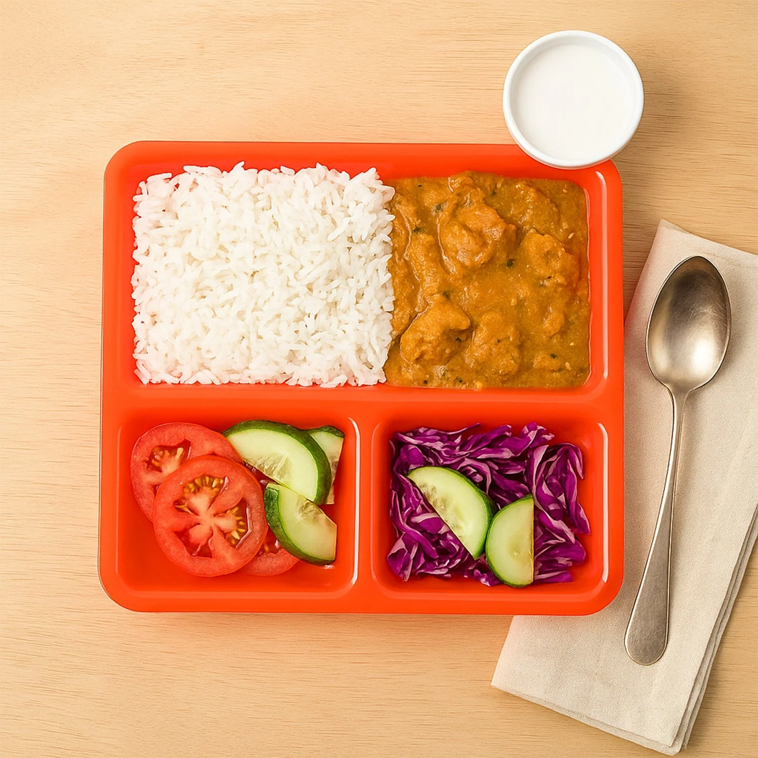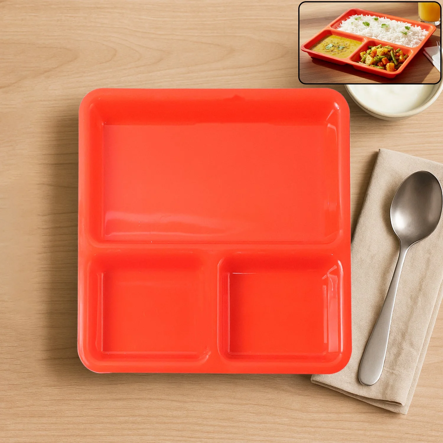 Plastic 3-compartment tray , Rectangular meal tray , Sectioned dining plate , Multi-compartment serving plate , Portion control tray , Mess-free plating tray , Home and office meal tray , Snack and meal serving plate , Lightweight plastic tray , Organized meal plate, Divided serving tray , Sturdy plastic thali
