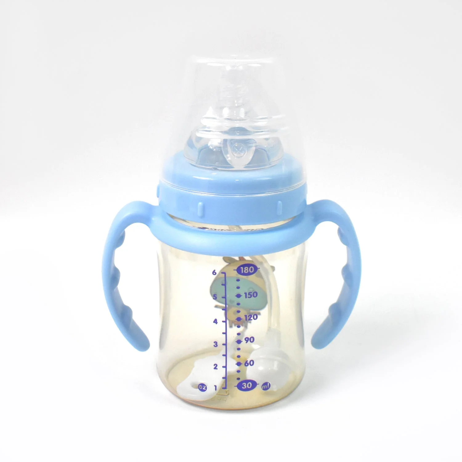 Plastic Baby Feeding Bottle with Plastic Handles, Cleaning brush & Silicone Straw Leakproof, BPA Free & Non-Toxic for Baby | Toddlers, Water Bottle, Milk Bottle for New Born / Infants (180 ML / 1 Pc)