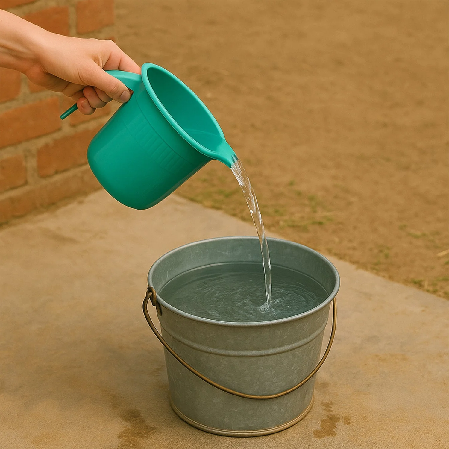 The thoughtfully designed pouring spout helps in smooth, splash-free water flow, while the wide base ensures stability when placed on any surface. A must-have addition to your bathroom or kitchen utility collection.
