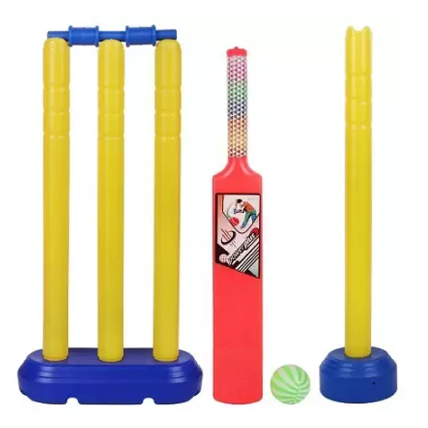 Junior Cricket Set Plastic Bat & Ball with Stumps Wickets for Kids Key Features (cricket, sports) (MOQ :- 6 Pc)