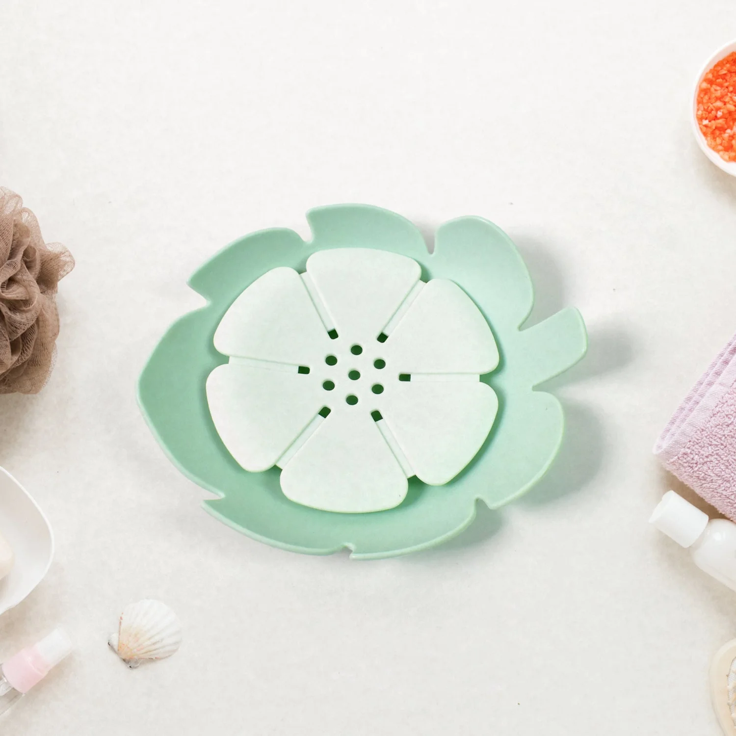 Plastic Flowers Soap Dish with Drain Soap Holder Non-Slip Flexible Soap Tray for Bathroom Shower, Bathroom Accessories Set Shower Gift (1 Pc)