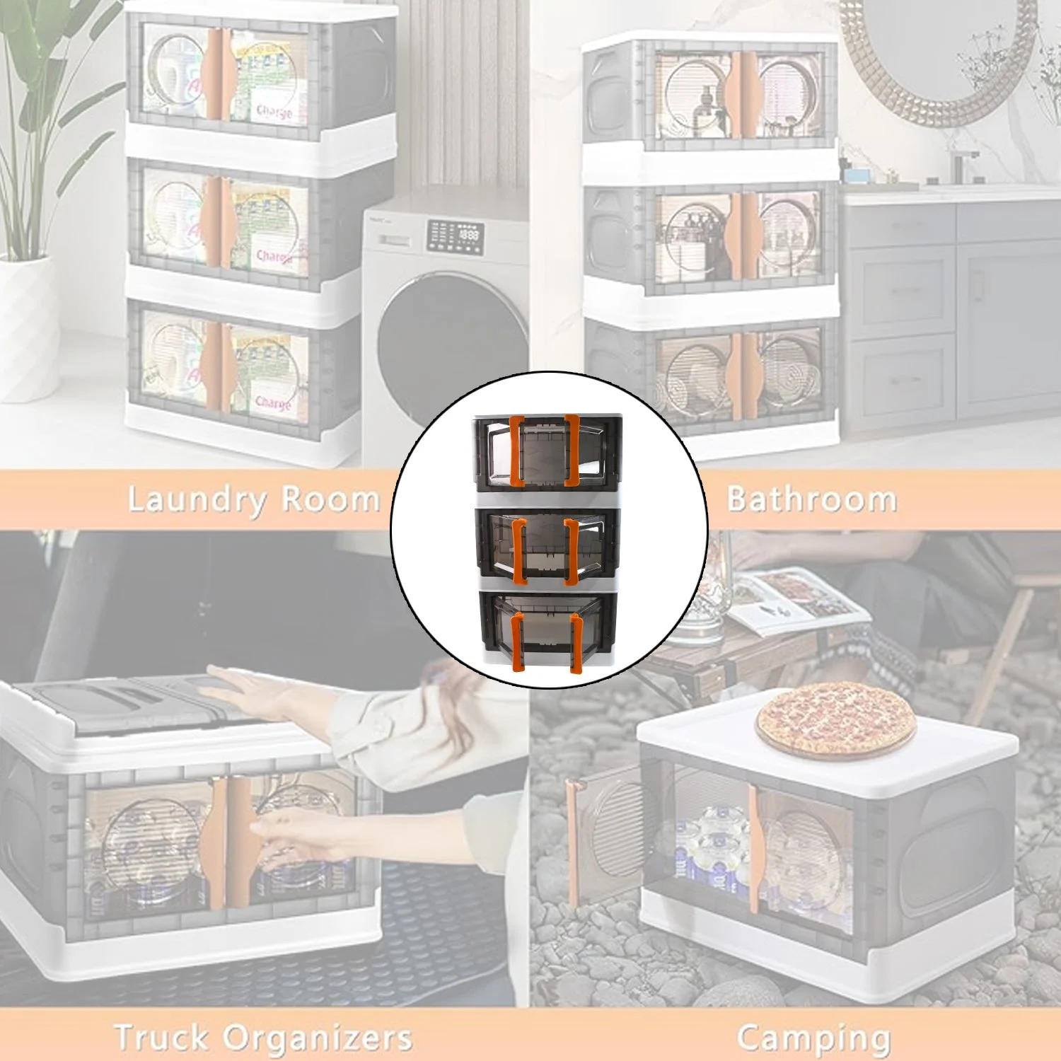 Plastic Folding Wardrobe Storage Organizer | Storage Bins with Double Door & Top Lid Opening | Drawer Organizer for Office | Black & White Folding Storage Cabinet (3 Layer / 1 Pc)