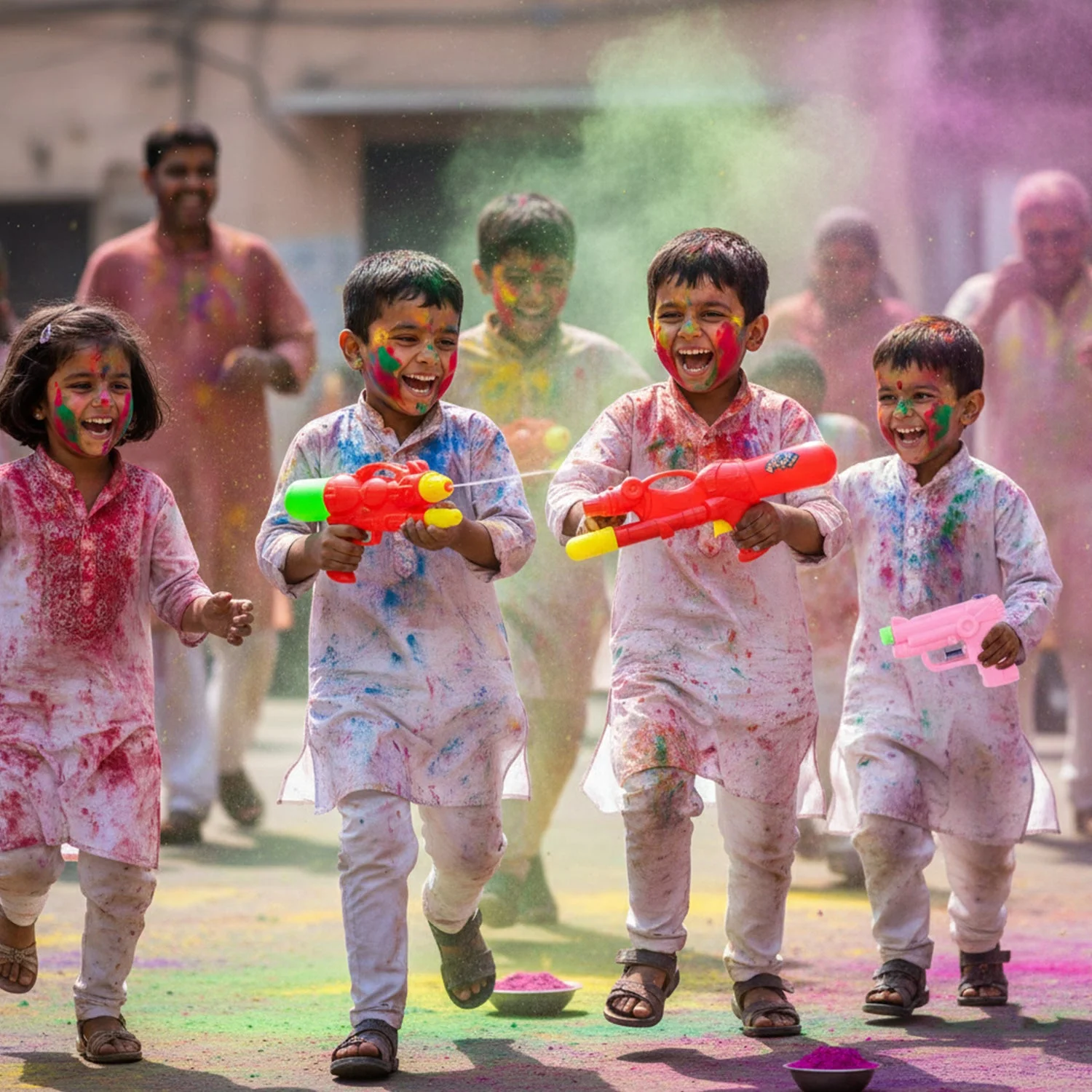 Add more fun and excitement to Holi celebrations and summer outdoor play with this plastic Holi water gun toy designed for kids. This manual handheld water blaster features an easy trigger spray action that allows children to spray water smoothly for playful water fights. Its comfortable grip handle makes it easy for kids to hold and use, while the attractive toy gun design adds extra excitement during play. Perfect for Holi festival, garden water games, terrace fun, pool parties, and beach outings, this water gun helps create joyful moments with family and friends. Lightweight, easy to fill, and simple to operate, it is a must-have summer toy for energetic kids.
