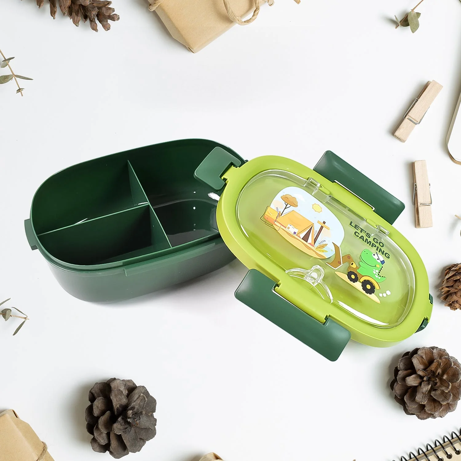Plastic Lunch Box Leak Proof 3 Compartment Lunch Box with Bottle Reusable Microwave Freezer Safe Food Containers with Spoon and Fork for Adults and Kids (1 Set)