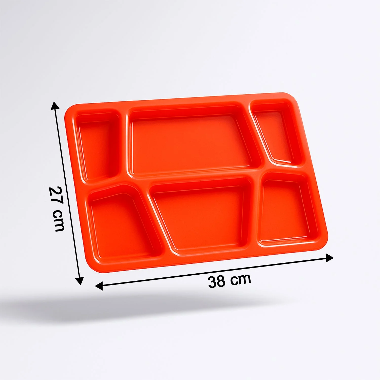 Plastic Multi-Compartment Rectangular Meal Serving Tray – Sectioned Dining Plate for Neat Portioning, Mess-Free Meals & Easy Cleanup, Partition Plate - 38x27 Cm (Cafeteria/Thali Style / 6 Comapartment)