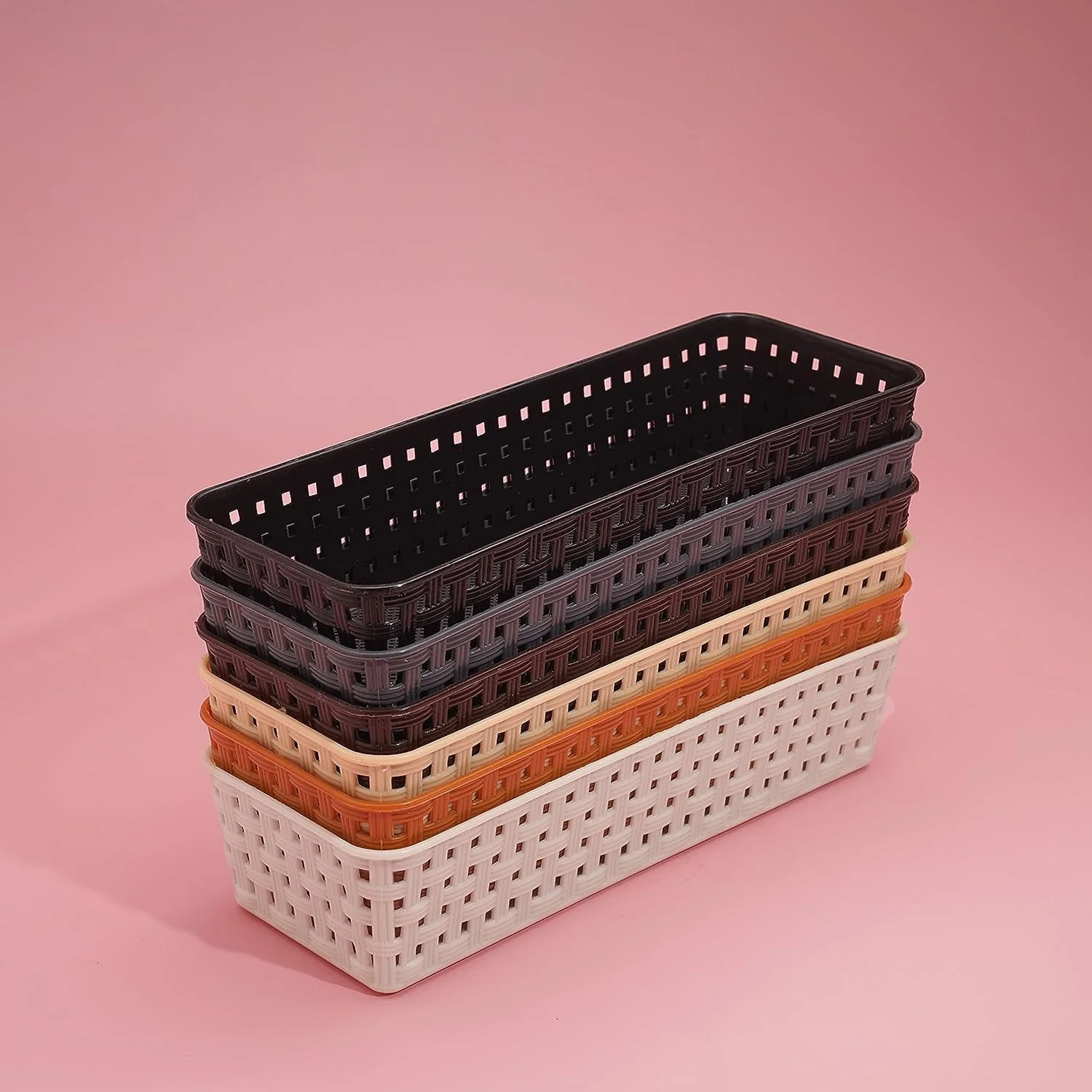 8787 Plastic Multipurpose Desk Organizer Tray Office Drawer Dividers Storage Bins for Kitchen, Bathroom, Office, Makeup, Bedroom Dresser, Craft Basket Rack Multicolour (6 Pcs Set)