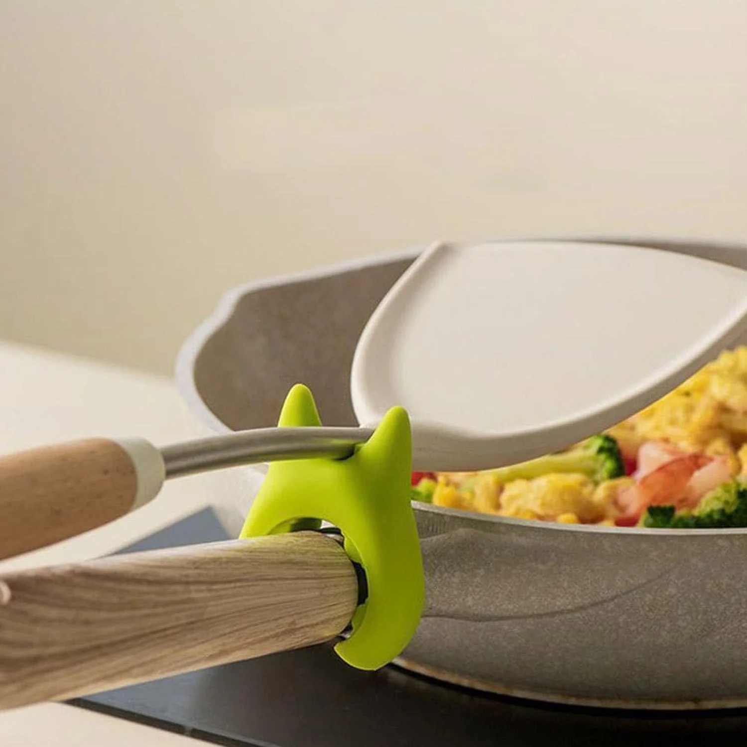 spoon holder clip , lid holder clip , spatula stand clip , kitchen tool holder , pot clip stand , no-mess cooking tool , multipurpose spoon support , heat-resistant utensil holder, creative spoon clip , cute kitchen gadget
