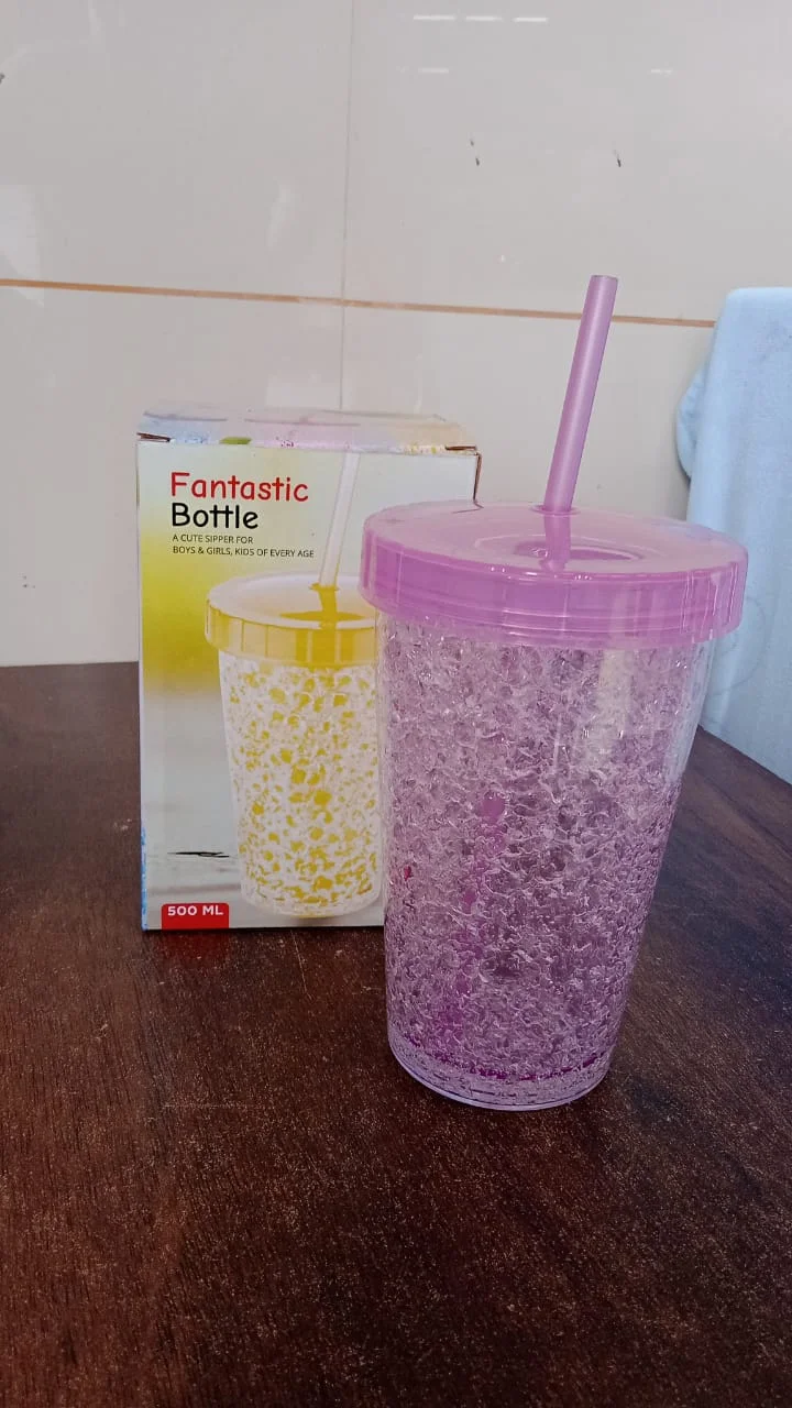 Plastic Fantastic Bottle Creative Cold Drink Cup, Reusable Sipper Tumbler with Lid and Straw, Double Wall Plastic Drinking Sport Bottle, Travel Tumbler (1 Pc / 500 ML / Mix Color / 1 Pc)