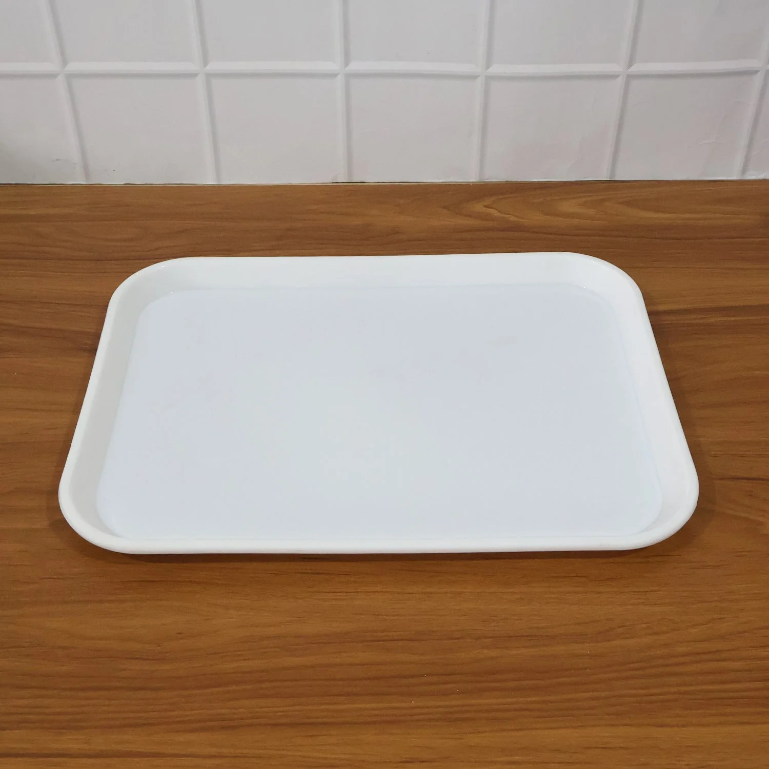 Serve drinks and snacks neatly with this practical 40 × 30 cm plastic tray. The smooth, easy-clean surface keeps cups and plates stable, while the rounded raised rim helps prevent slips and spills during carrying. Lightweight yet sturdy, it’s comfortable to handle for everyday use and tough enough for pantries, hostels, cafés, and catering counters. The clean white finish blends with any table setting and stacks flat to save space when not in use.