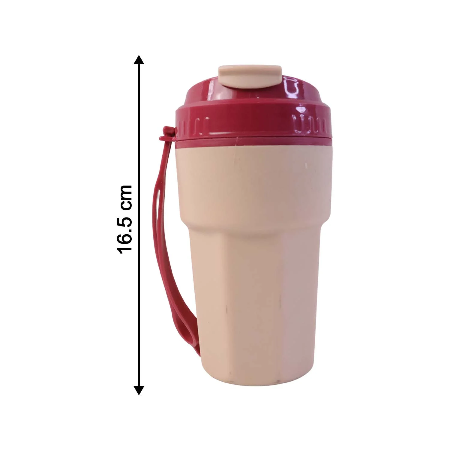 This plastic sipper bottle is designed for convenient and mess-free daily hydration at home, office, school, gym, or during travel. The flip-top lid allows easy sipping while helping reduce accidental spills, making it suitable for everyday use. Its compact and ergonomic shape fits comfortably in hand and can be placed easily on desks, in bags, or cup holders. The attached carry strap adds portability, making it simple to carry during workouts, commutes, or outdoor activities. This reusable bottle supports regular hydration habits and is ideal for water and other daily beverages.