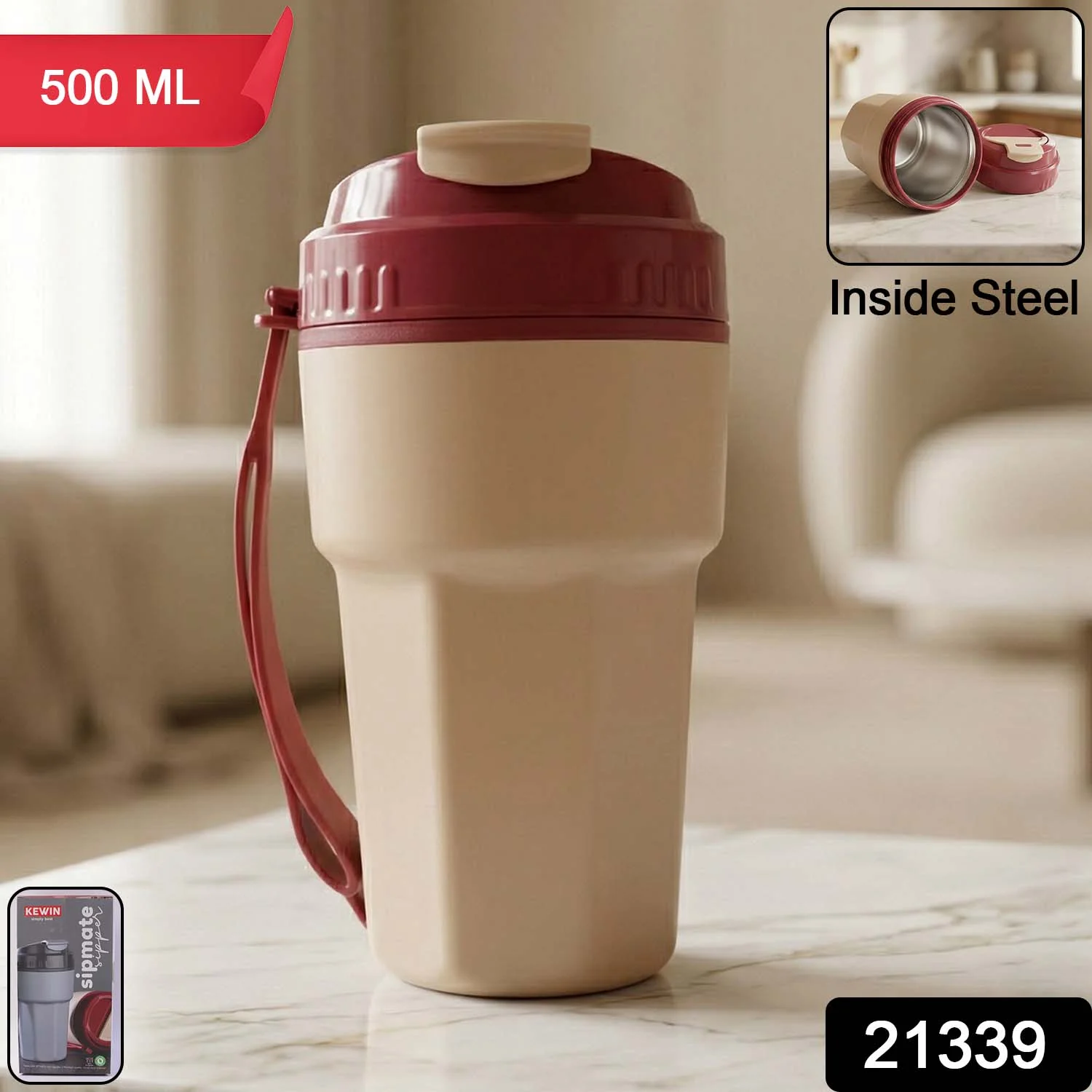 plastic sipper bottle 500ml, sipmate style water bottle, flip top lid water bottle, leak resistant sipper bottle, 500 ml water bottle with strap, gym water bottle plastic, school water bottle flip cap, office hydration bottle, travel sipper bottle, reusable plastic water bottle, carry strap water bottle