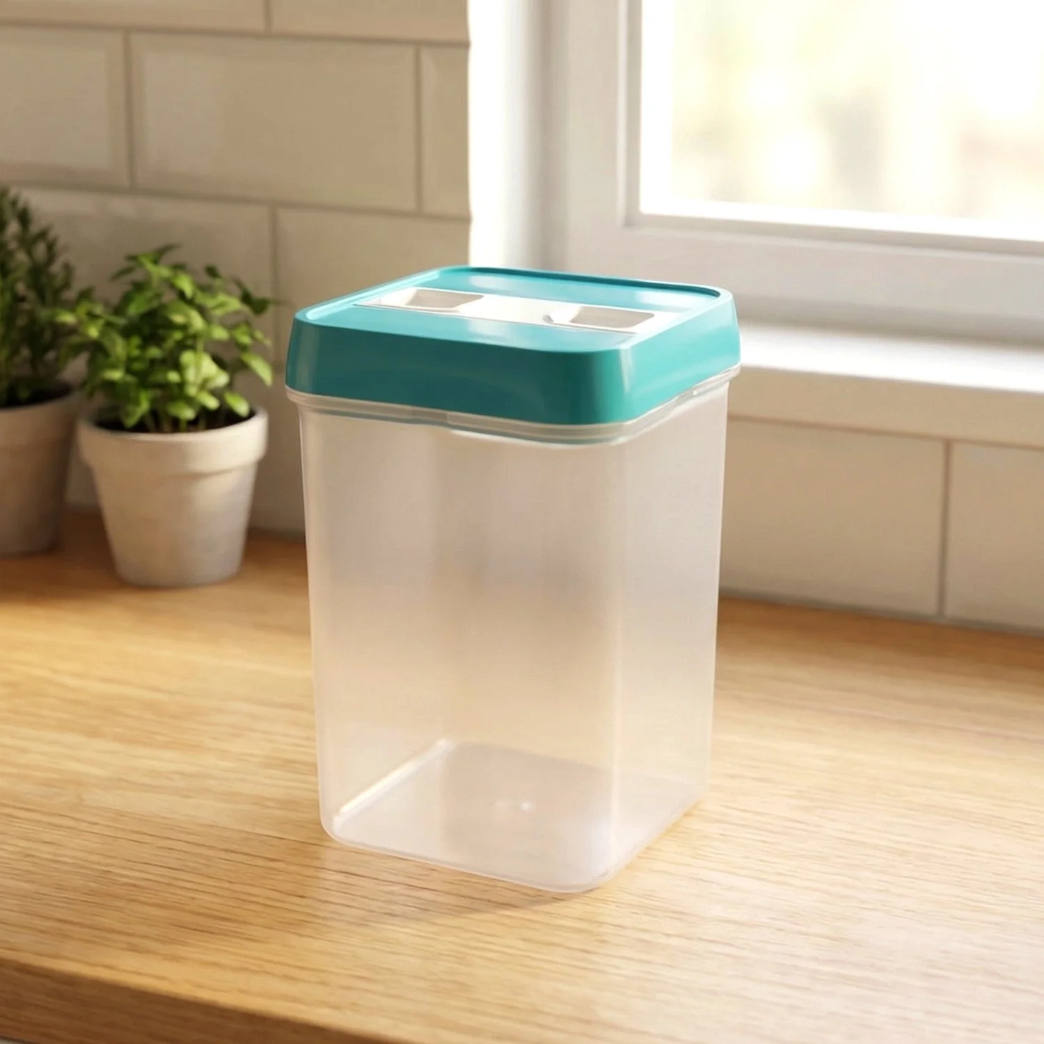 This plastic smart seal food storage container is designed to keep dry food items fresh and neatly organized in the kitchen. With an approximate capacity of 1200 ML, it provides convenient storage for cereals, grains, pulses, snacks, and other pantry essentials. The smart seal lid helps maintain freshness by reducing exposure to air and moisture. Its transparent body allows quick visibility of stored contents, making it easy to identify food items without opening the container. The compact and practical design fits easily in kitchen cabinets, shelves, or pantry racks. It is an ideal storage solution for maintaining a clean and organized kitchen environment.