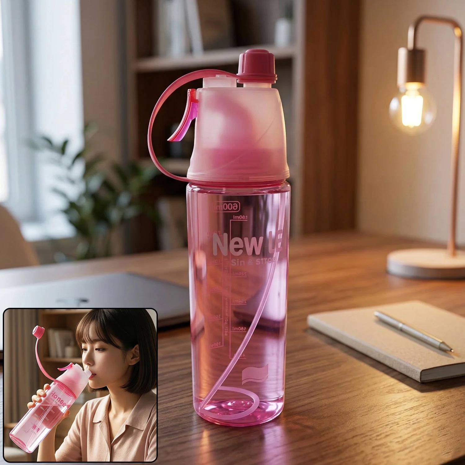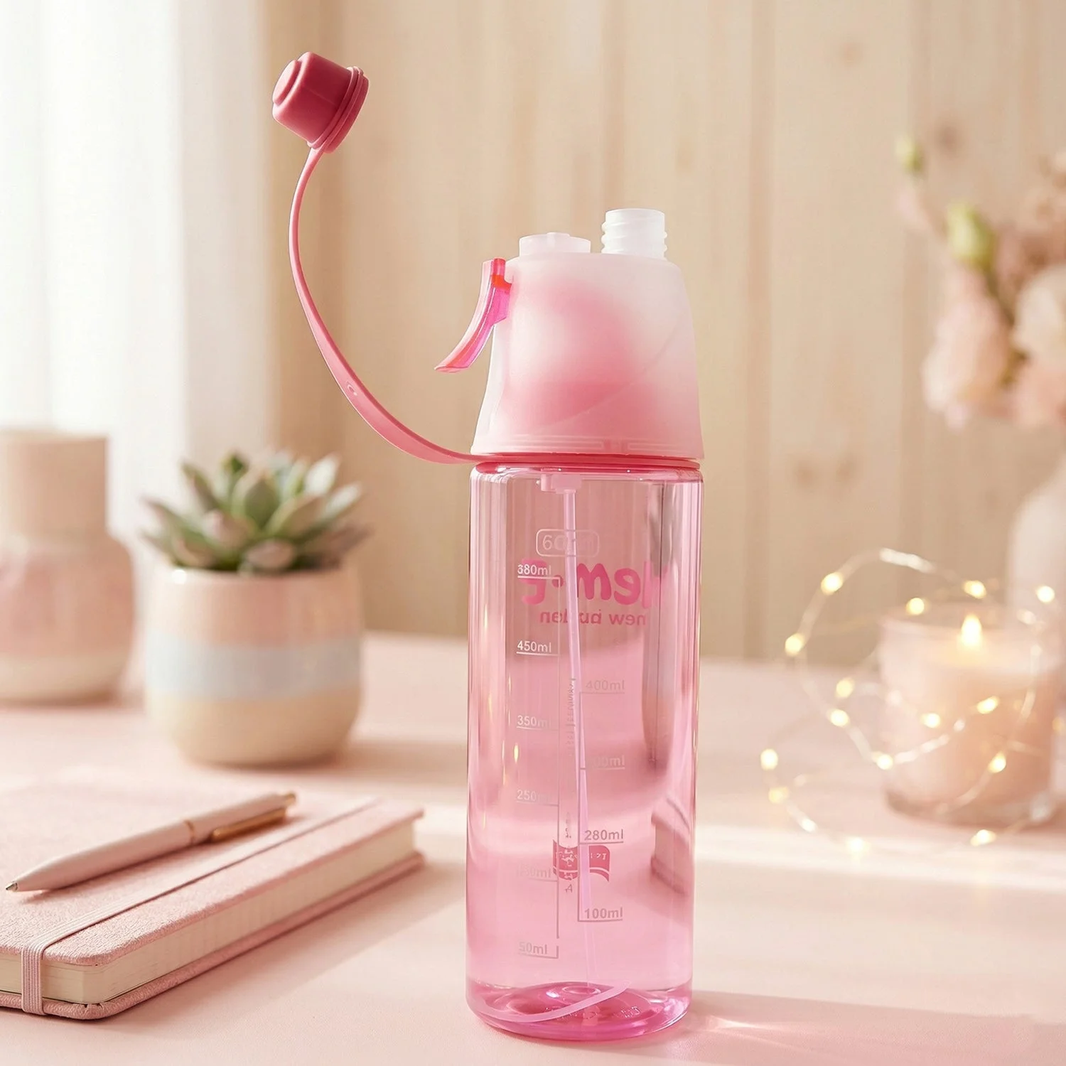 spray water bottle, misting water bottle, hydration bottle with spray, drinking and cooling bottle,portable mist bottle,school water bottle,sports hydration,flip-top spray bottle,novelty hydration bottle
