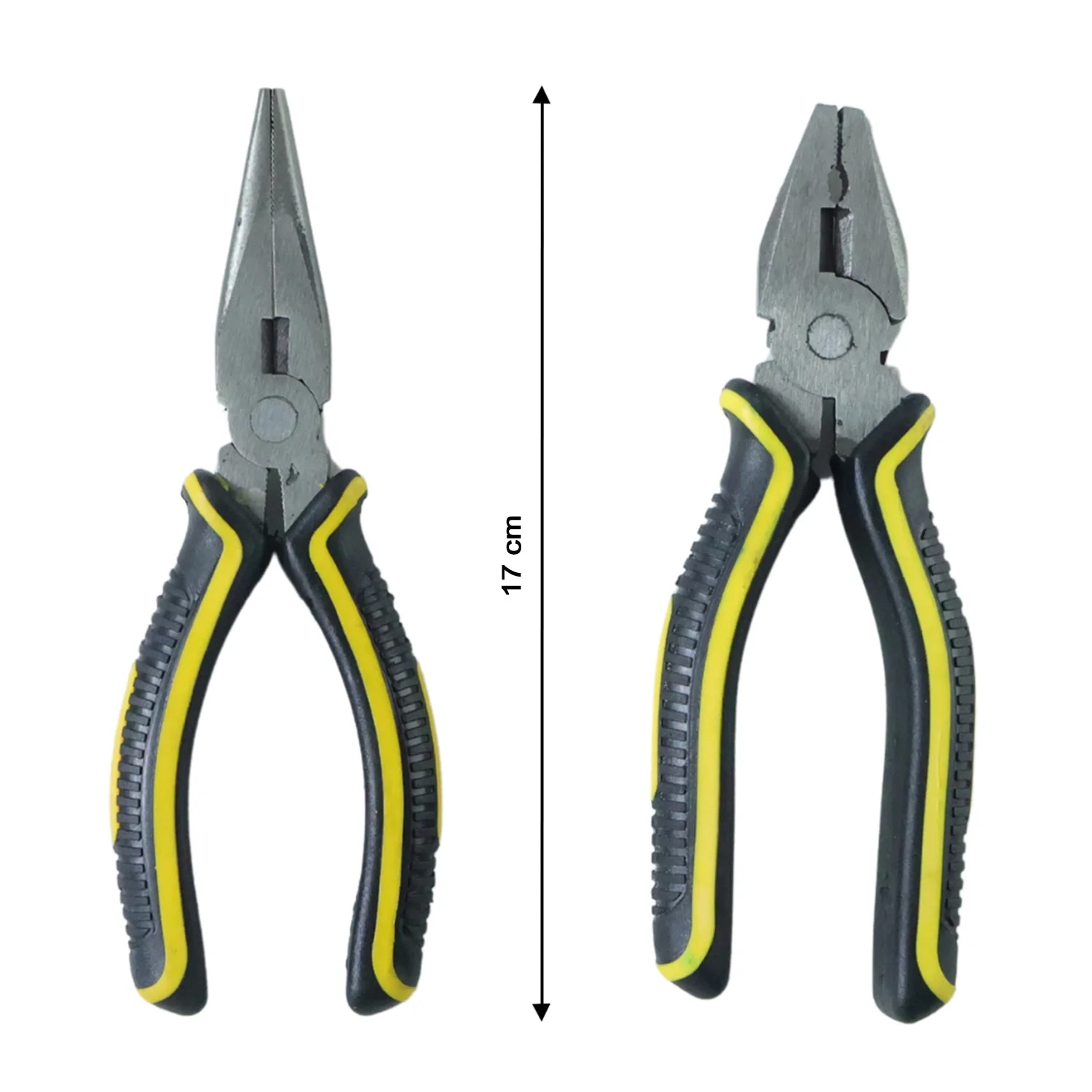 Upgrade your toolbox with this 2 piece pliers set featuring a combination plier and a long nose plier for versatile applications. Designed for strength and precision, these tools are suitable for gripping, bending, cutting and holding wires or small components. The anti slip ergonomic handles provide a comfortable and secure grip, reducing hand fatigue during extended use. Built with durable metal construction, the pliers ensure reliable performance for home repairs, electrical work and DIY tasks. A practical and essential addition to every household or professional toolkit.