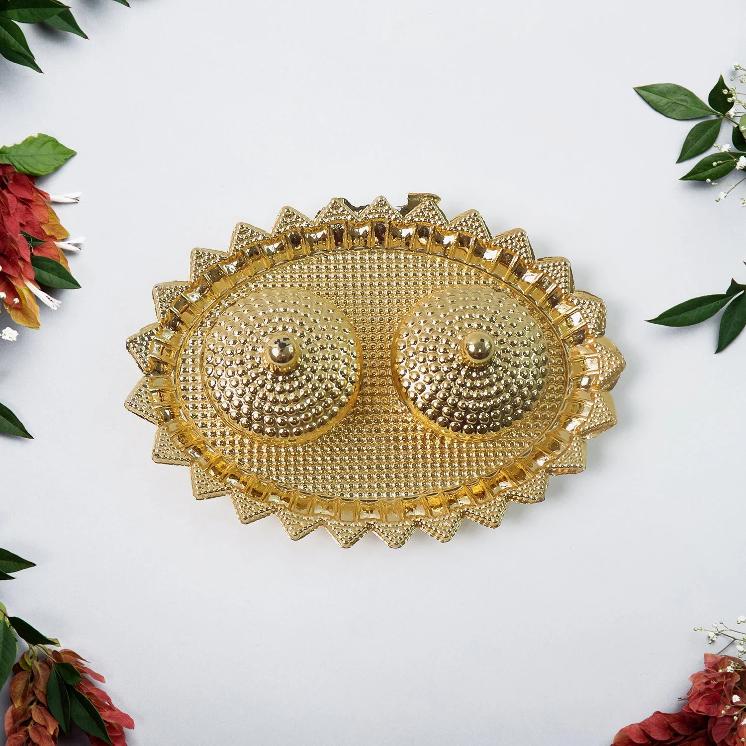 Gold-tone textured finish with intricate embossing for a premium, traditional look.