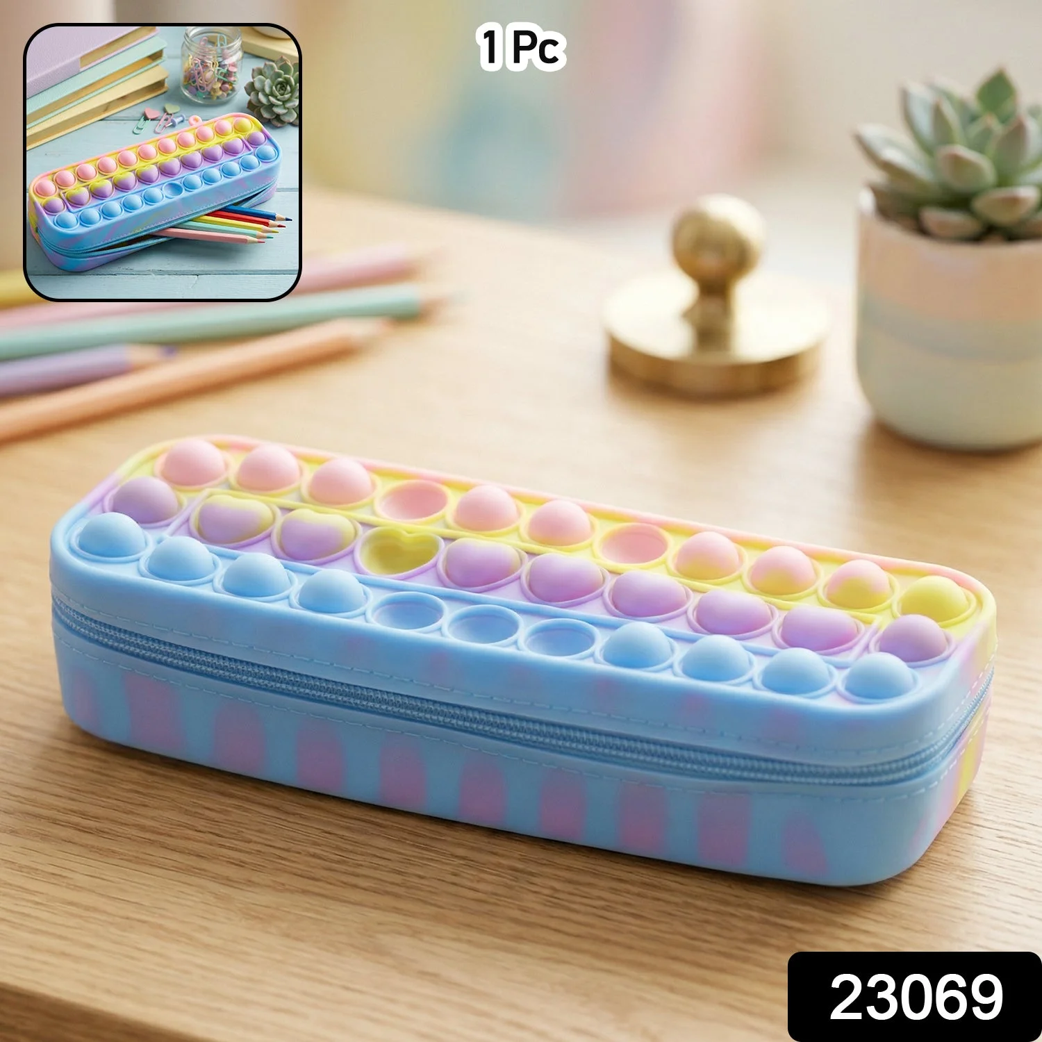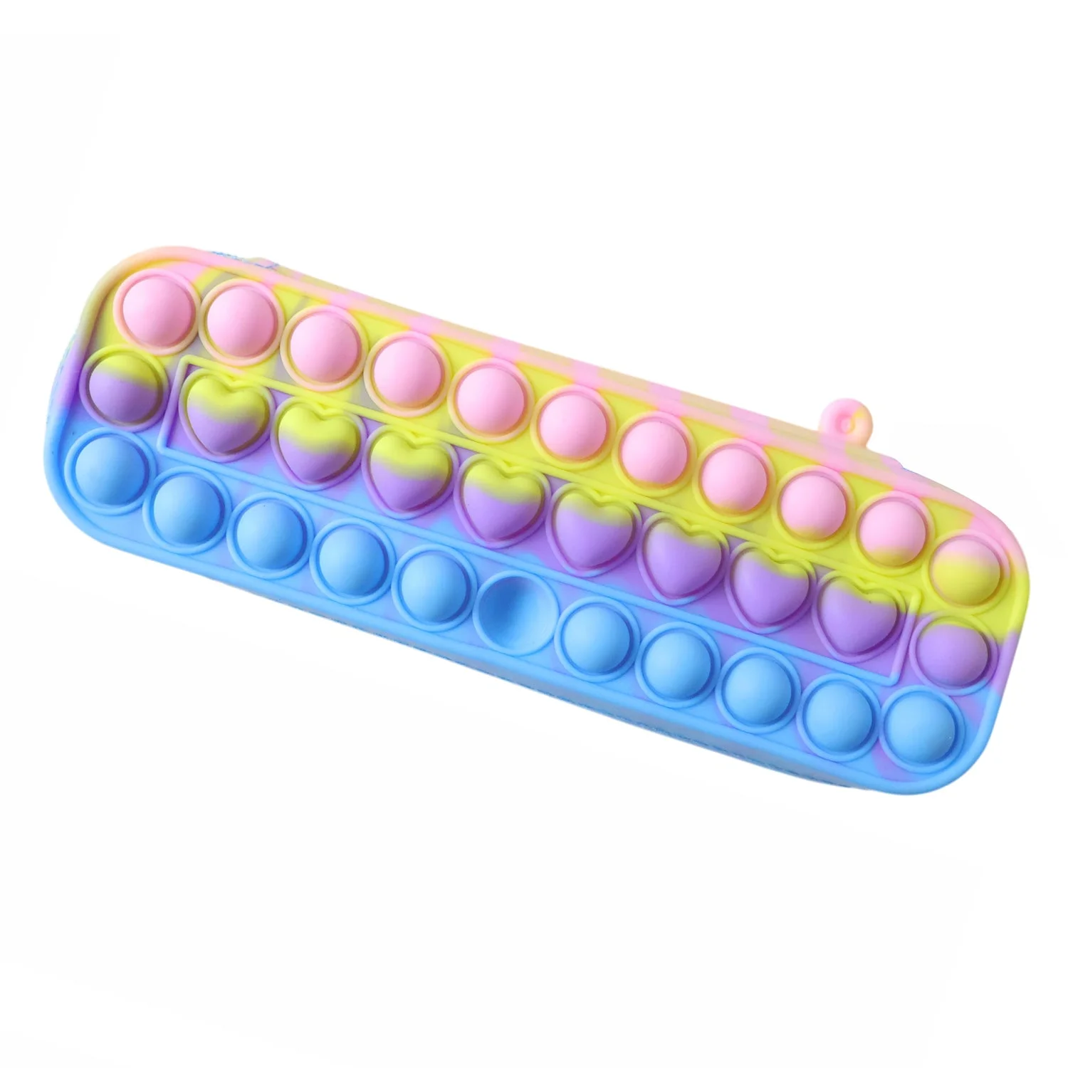 Pop It Silicone Pencil Pouch with Zipper 1 Pc – Rainbow Fidget Pencil Case Multipurpose Storage Organizer for School Kids Stationery Holder Stress Relief Design