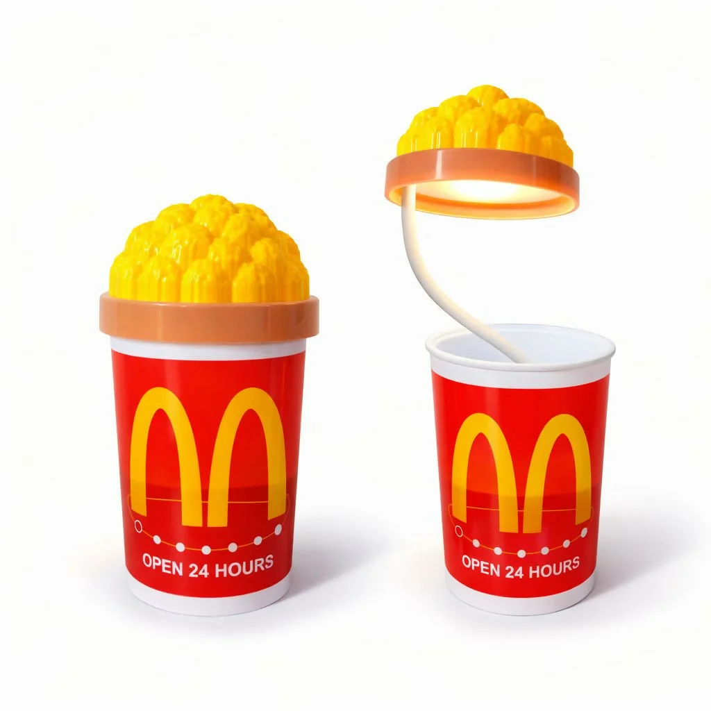 Add a fun and playful touch to your desk with this creative popcorn style LED desk lamp. Designed to resemble a popcorn cup with a popcorn-shaped lamp head, this unique lamp also functions as a pen holder for organizing stationery. The flexible neck allows easy adjustment of the light direction, making it ideal for reading, studying, or working. Perfect for kids' rooms, study tables, offices, or creative workspaces, this lamp combines decorative charm with practical functionality.
