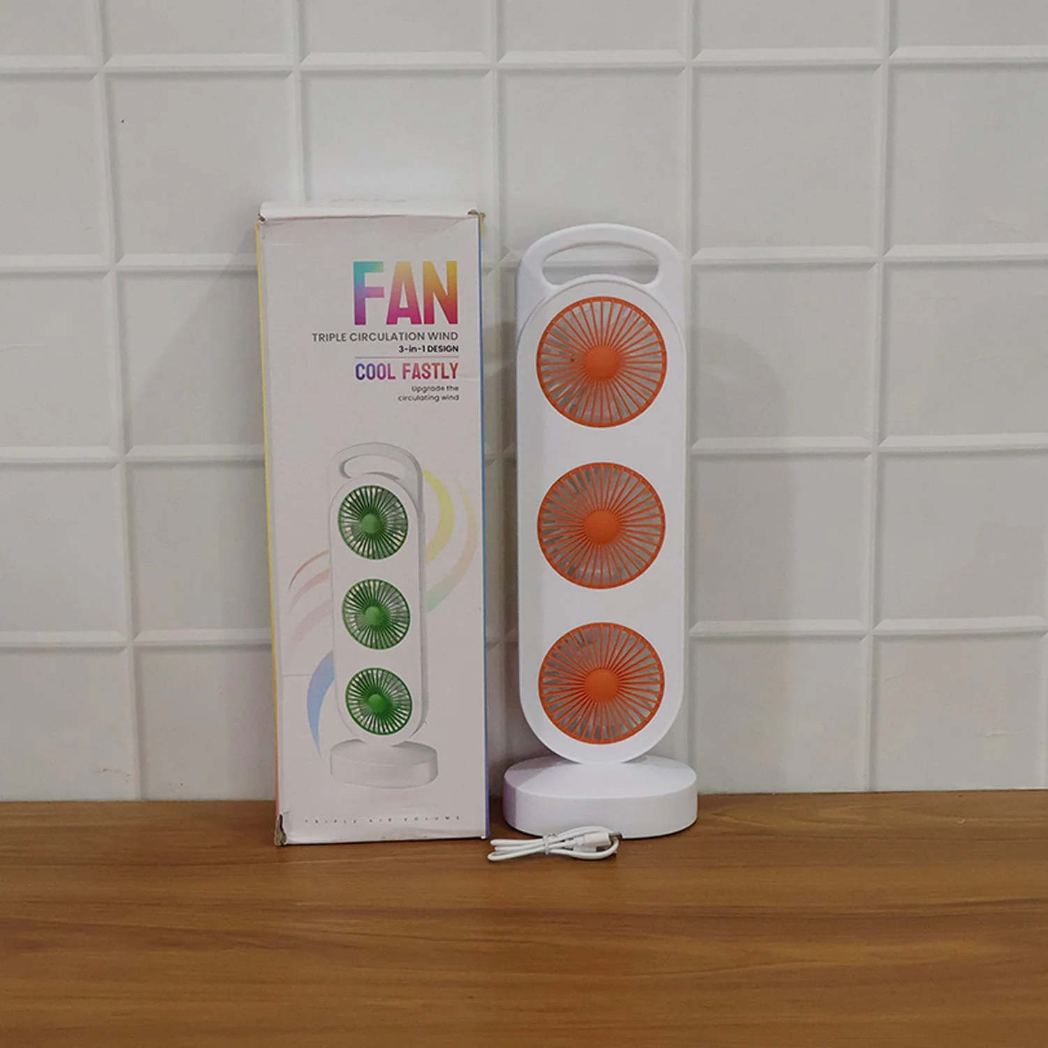 Portable 3 in 1 Design Triple Head Table Fan with 3 Cooling Fans, USB Rechargeable Desktop Air Circulator Fan for Home Office Study Table Personal Cooling – 1 Pc