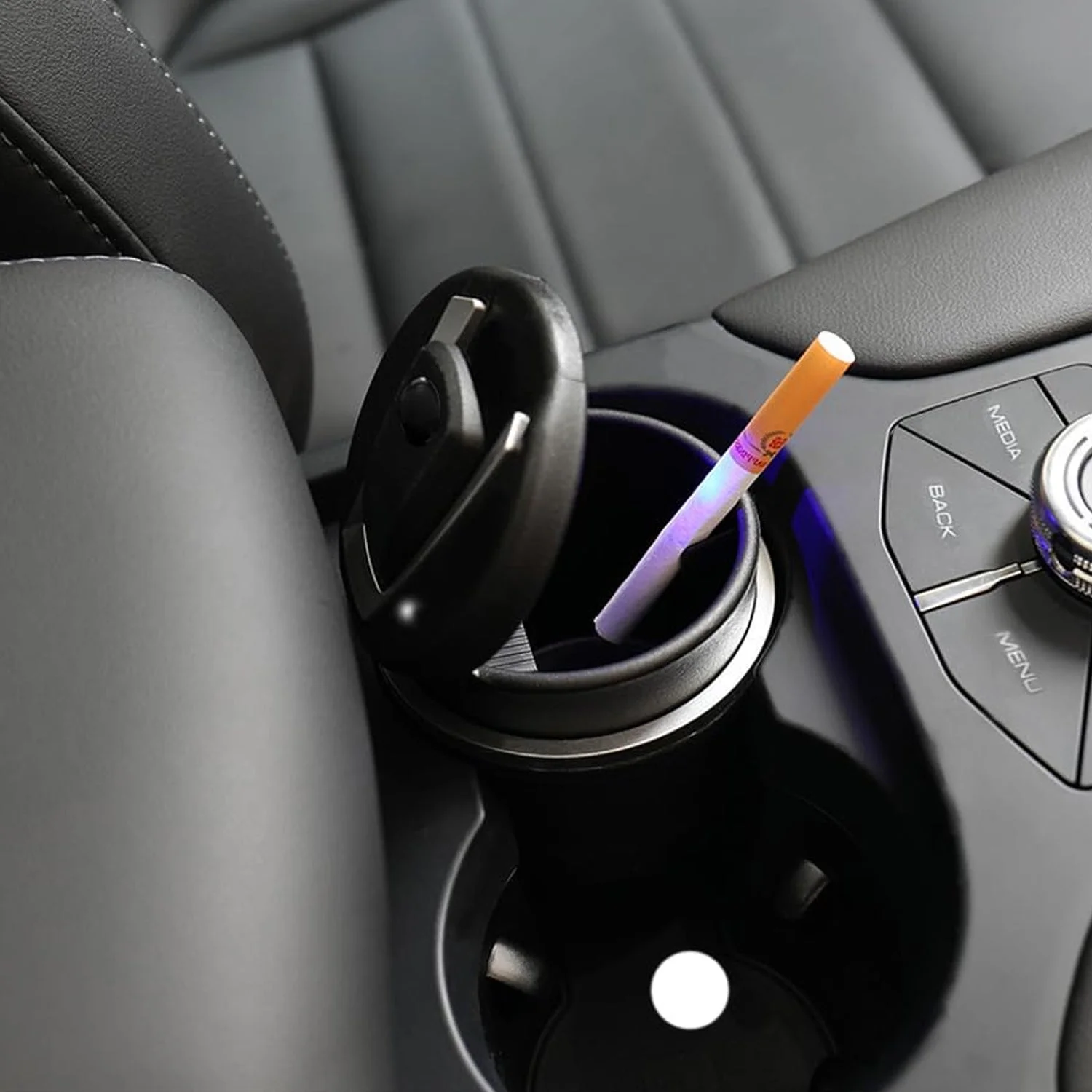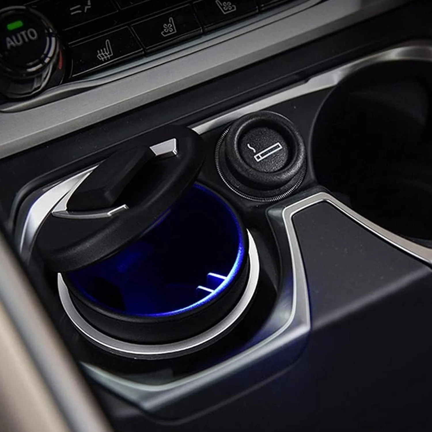 - Car Ashtray ---The smokeless ashtray has a blue LED light that will light up when the lid is lifted. The LED light allows you to easily find its location.