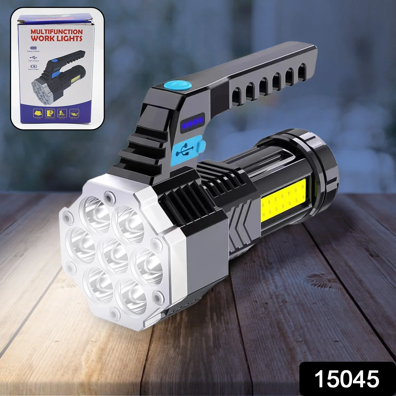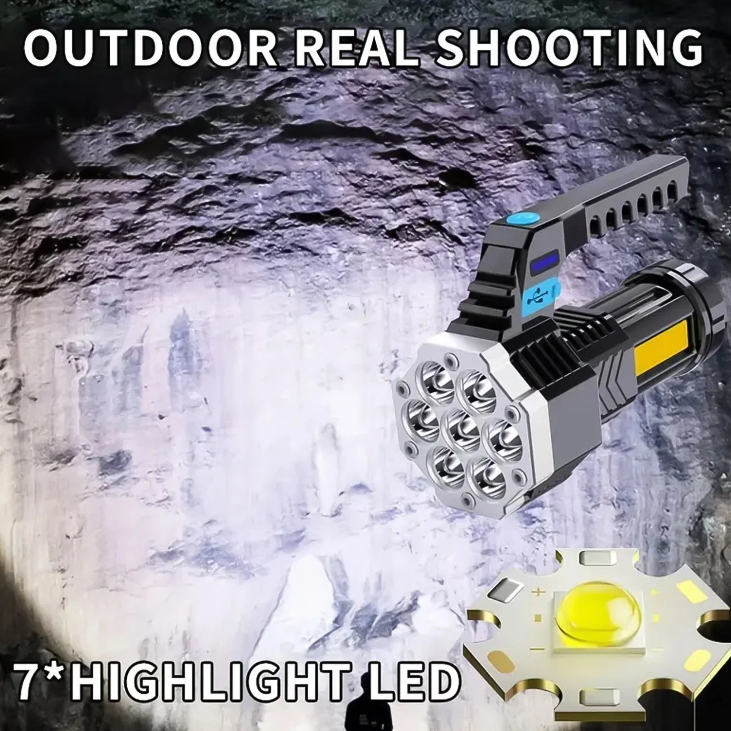 Outdoor Portable Camping Fishing Flashlight / Torch Multi-Mode High Brightness Lantern COB 7LED Hand Light USB Rechargeable Light with Side Light High Power LED Flashlight Powerful (1 Pc)