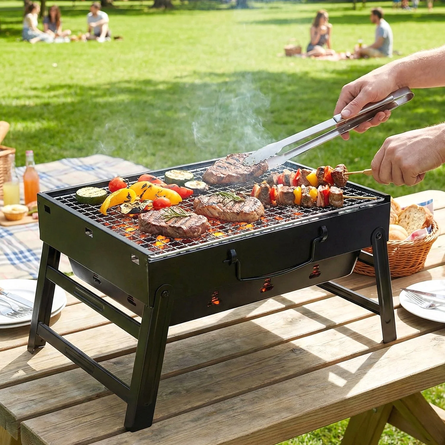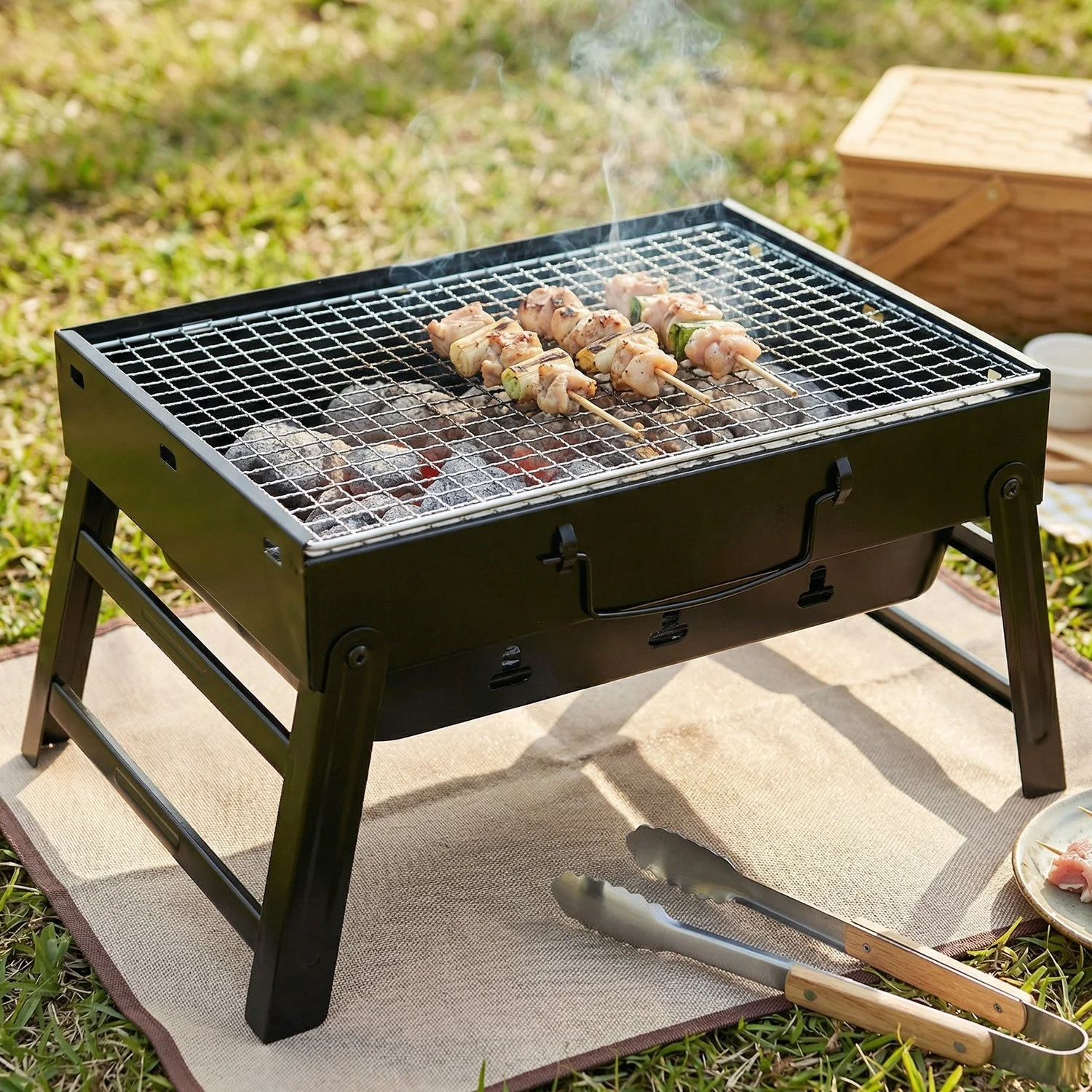 Designed for convenience, this foldable barbecue grill is easy to carry for camping or picnics. The charcoal grill with steel mesh distributes heat evenly for perfect grilling results. A reliable outdoor BBQ grill that enhances travel cooking experiences.