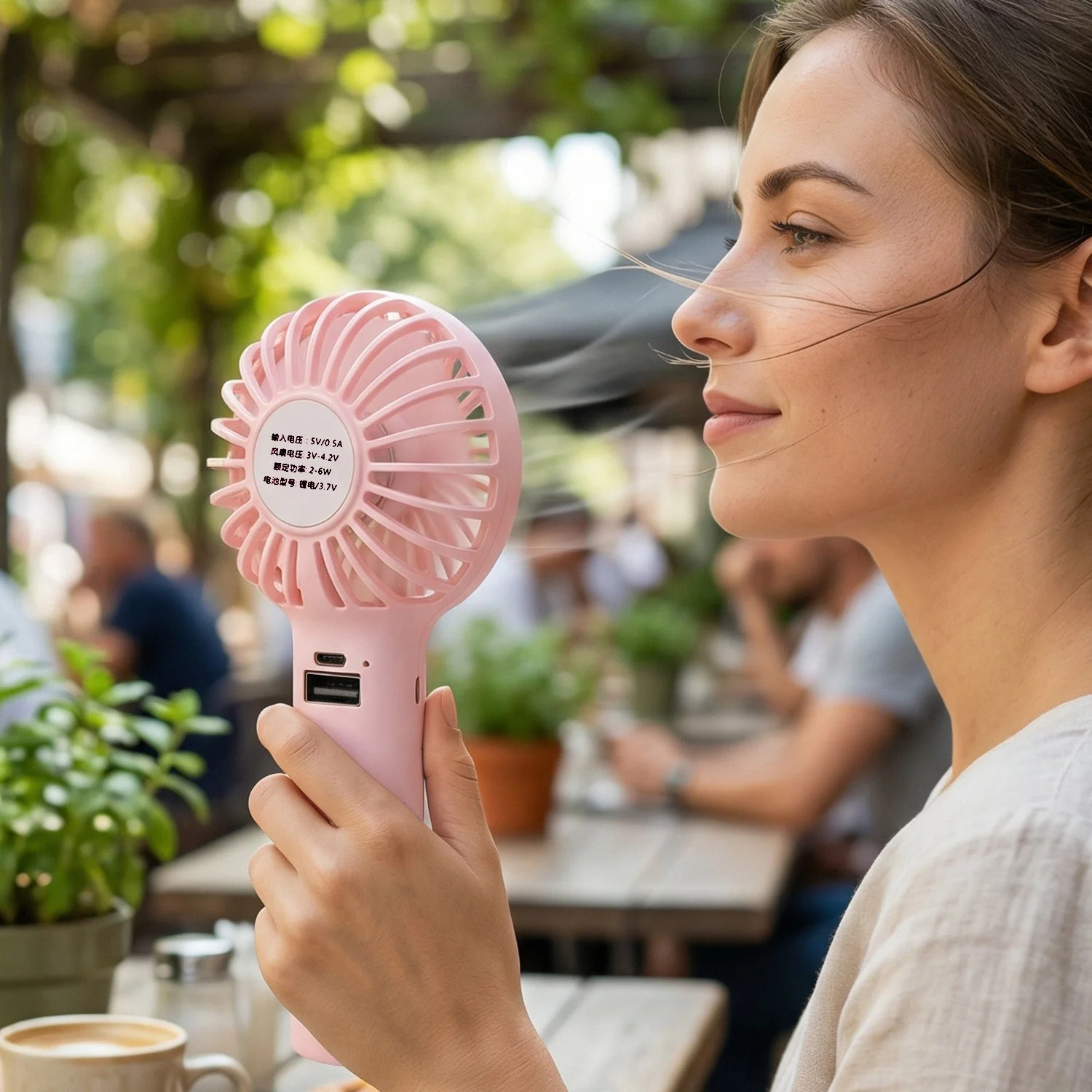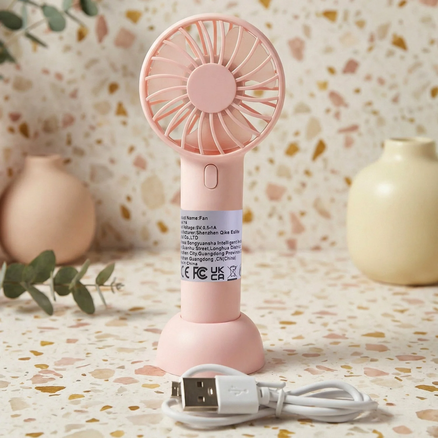 Stay cool anytime, anywhere with this portable handheld fan designed for convenient personal cooling. Featuring a compact and lightweight design, this mini fan is easy to carry and perfect for travel, office, or outdoor use. The rechargeable battery ensures long-lasting performance, while the powerful airflow provides instant relief from heat. It can be used as both a handheld fan and a desk fan with its stable base, offering versatile functionality. Ideal for daily use, this fan combines portability, efficiency, and comfort in one smart design.