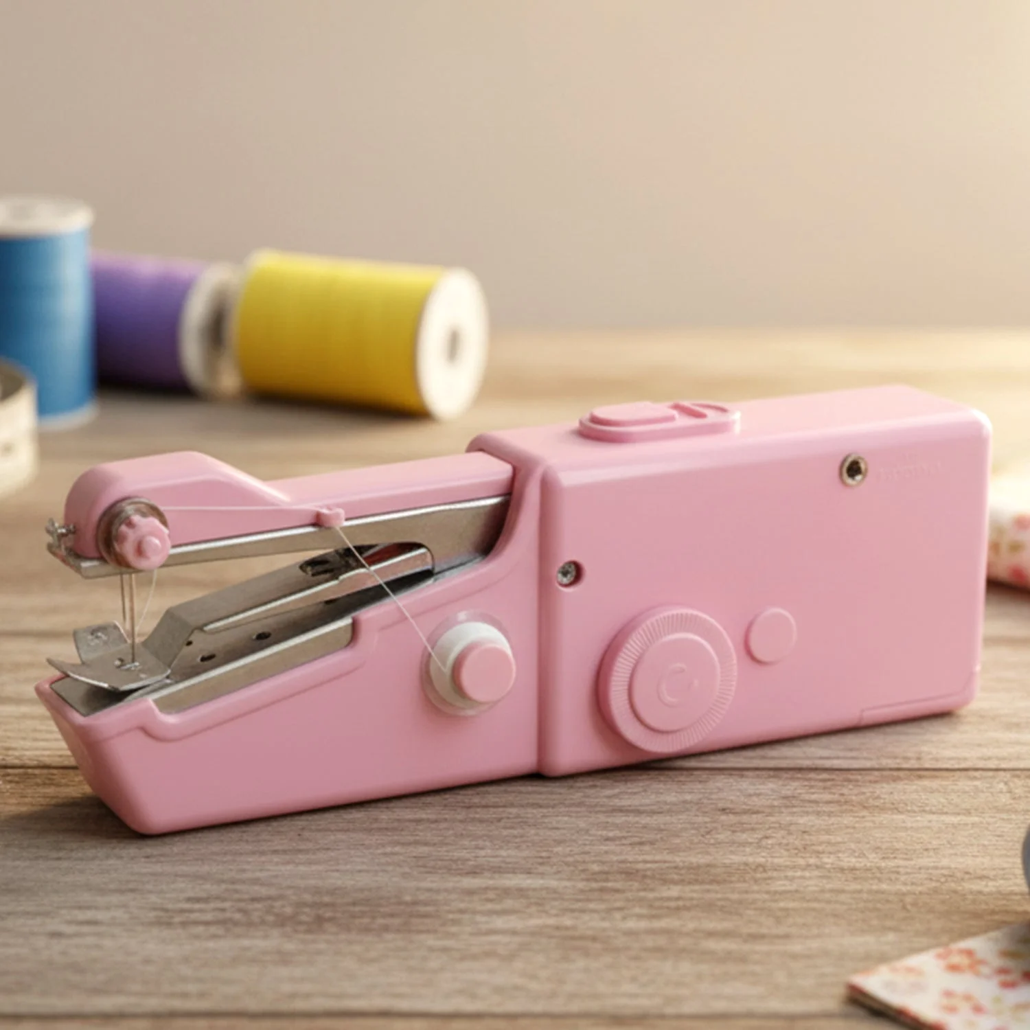 Compact handheld sewing machine designed for simple stitching tasks