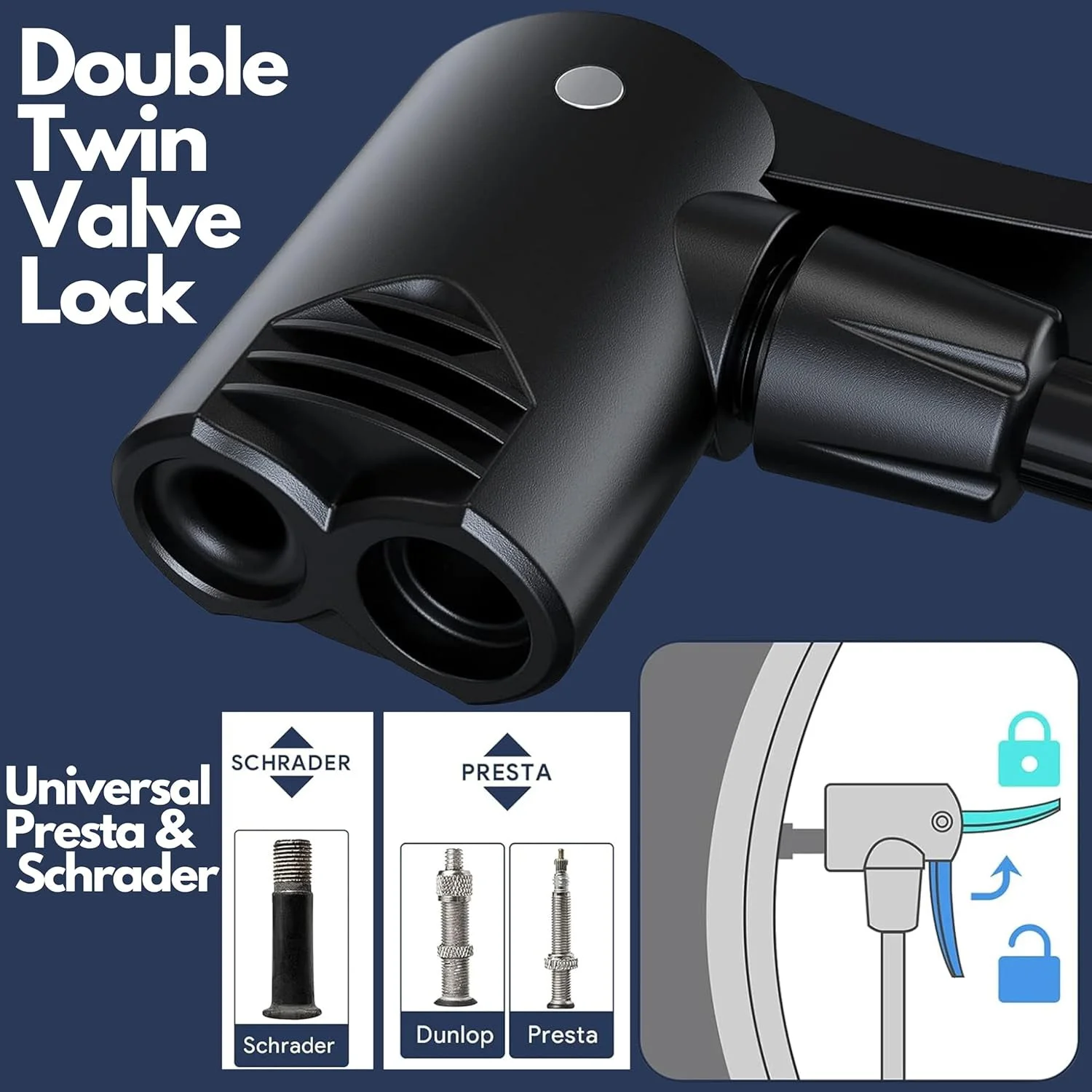 - Newly designed valve head can easily switch between Presta and Schrader valves