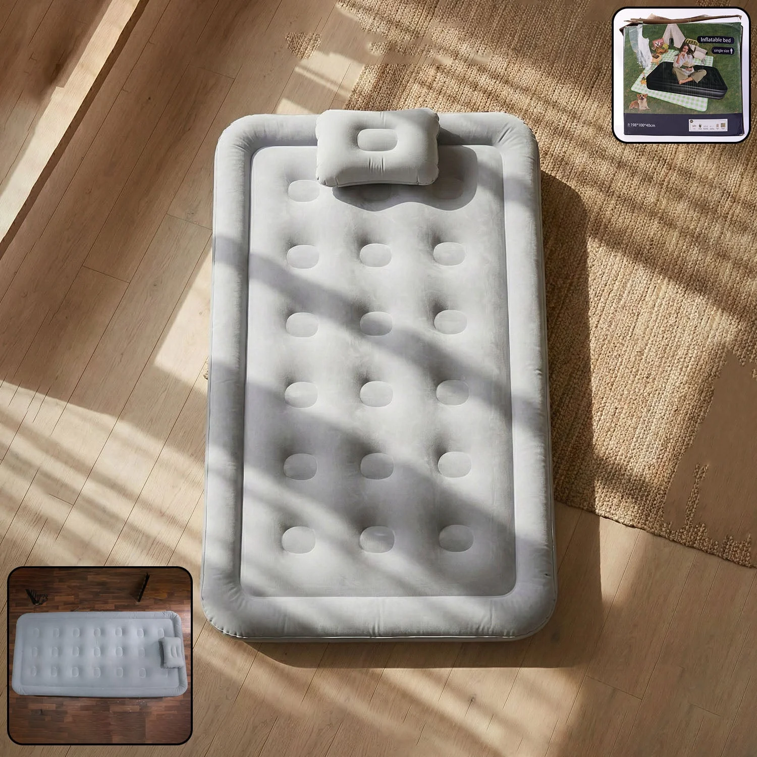 Air Bed , Blow Up Bed , Portable Sleeping Mattress , Camping Mattress , Travel Bed, Temporary Bed , Single Air Mattress , Built-in Pump Bed , Lightweight Air Mattress