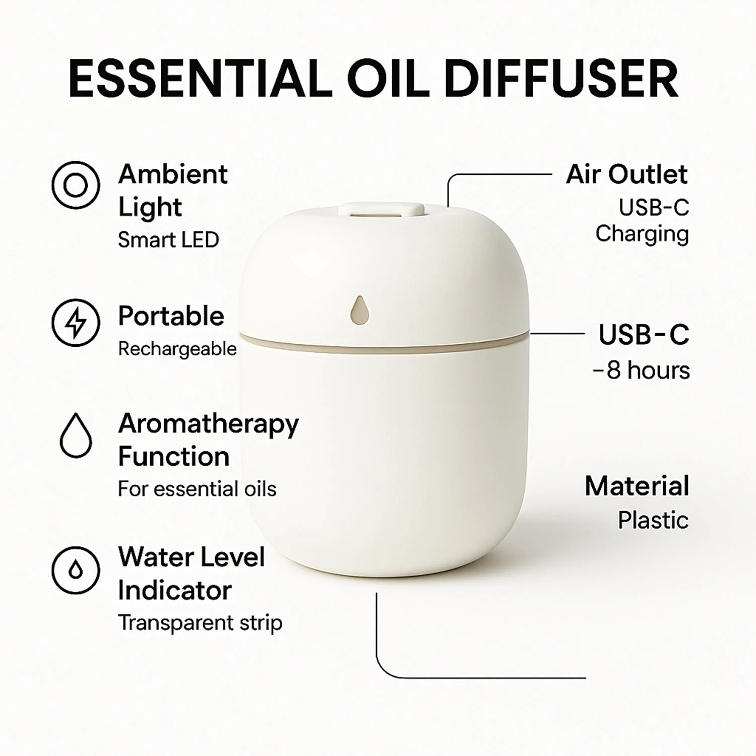 - PORTABLE MINI HUMIDIFIER -This humidifier has a 300ML water tank, Small but powerful humidifiers quietly working for better cool . With instant refill and easy to clean. The best partner to enjoy healthier when traveling, bedroom, office, baby room and car with USB power supply.